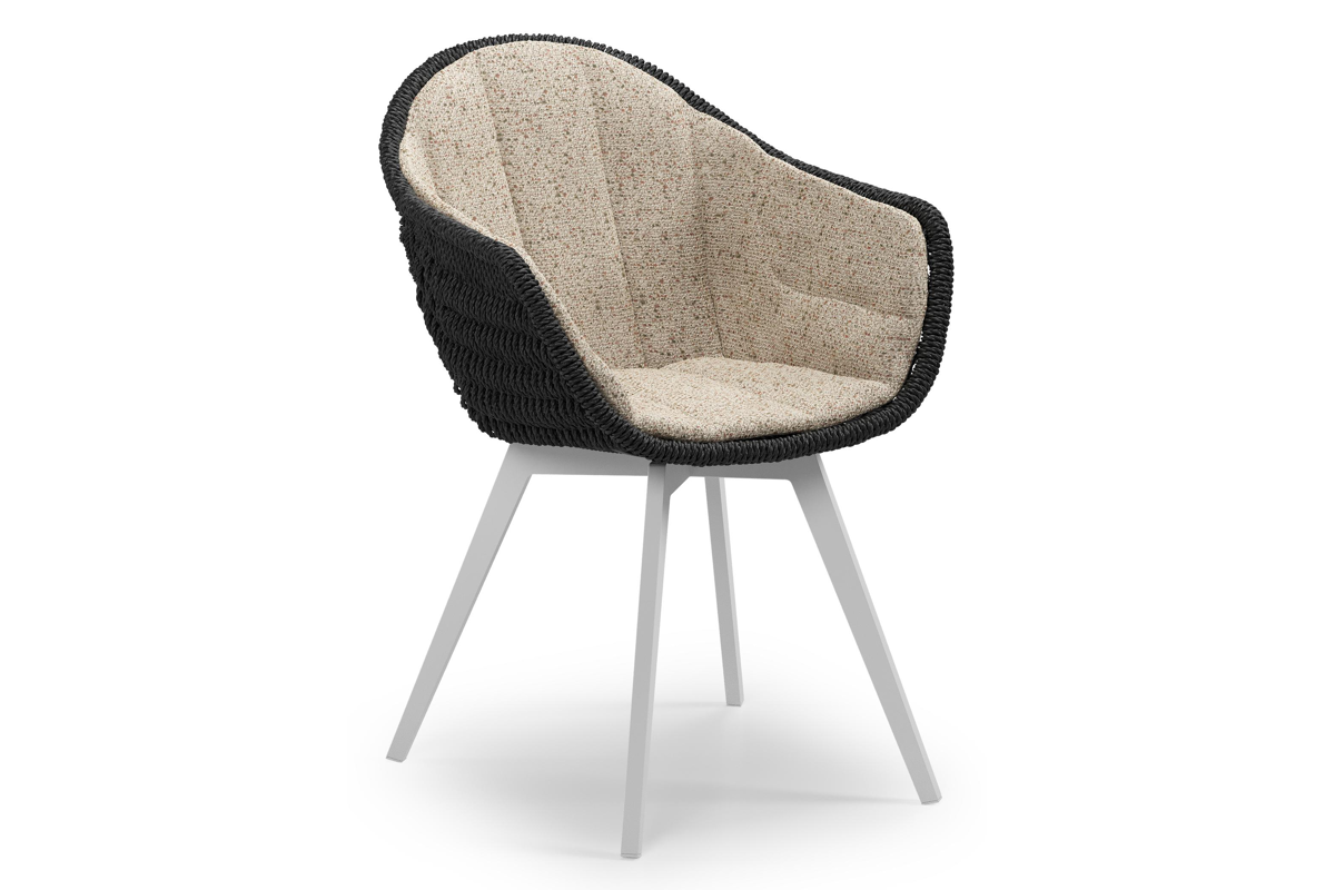 Pagino tuinstoel in wit aluminium en zwart ronde wicker met zitkussen in All Weather Cosytica Bora Jungle | Exterioo