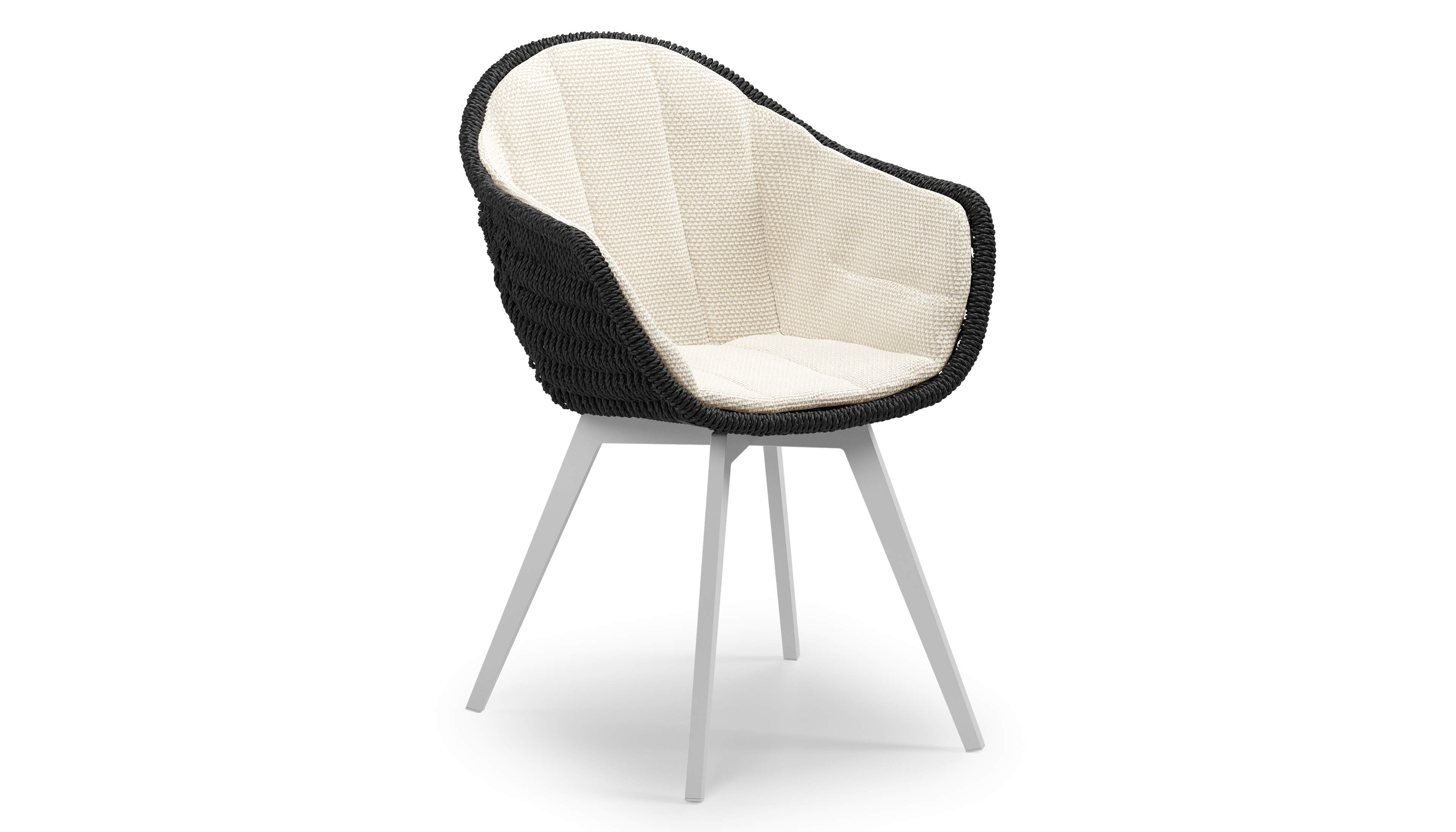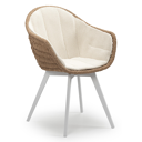 Pagino tuinstoel in wit aluminium en zwart ronde wicker met zitkussen in All Weather Cosytica Althea Off White | Exterioo tuinmeubelen