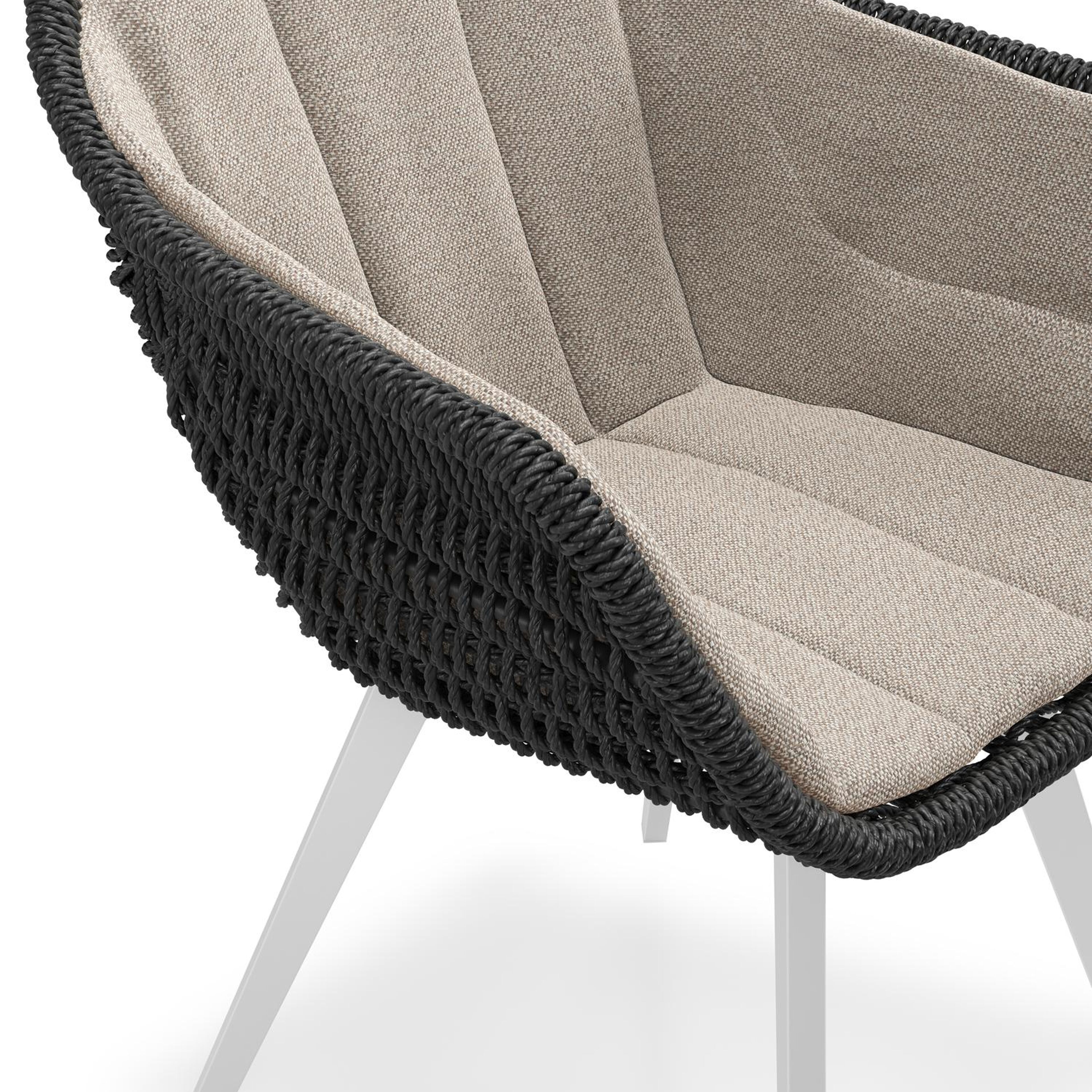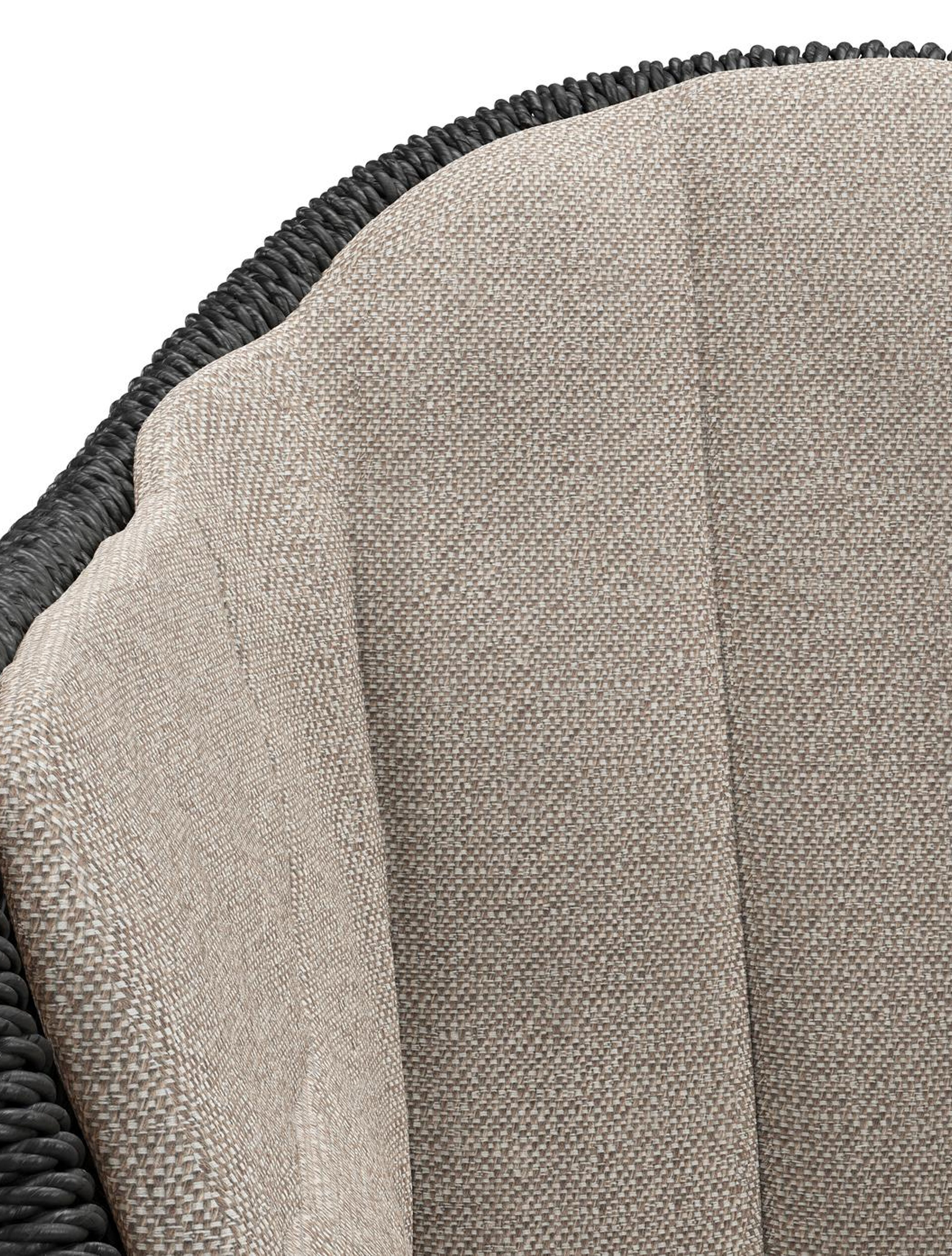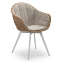 Pagino tuinstoel in wit aluminium en zwart ronde wicker met zitkussen in All Weather Sunbrella® Luxe Savane Coconut | Exterioo tuinmeubelen