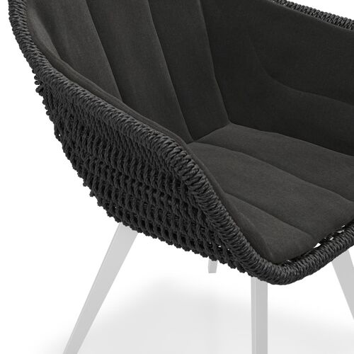 Pagino tuinstoel in wit aluminium en zwart ronde wicker met zitkussen in All Weather Sunbrella® Luxe Natte Sooty | Exterioo