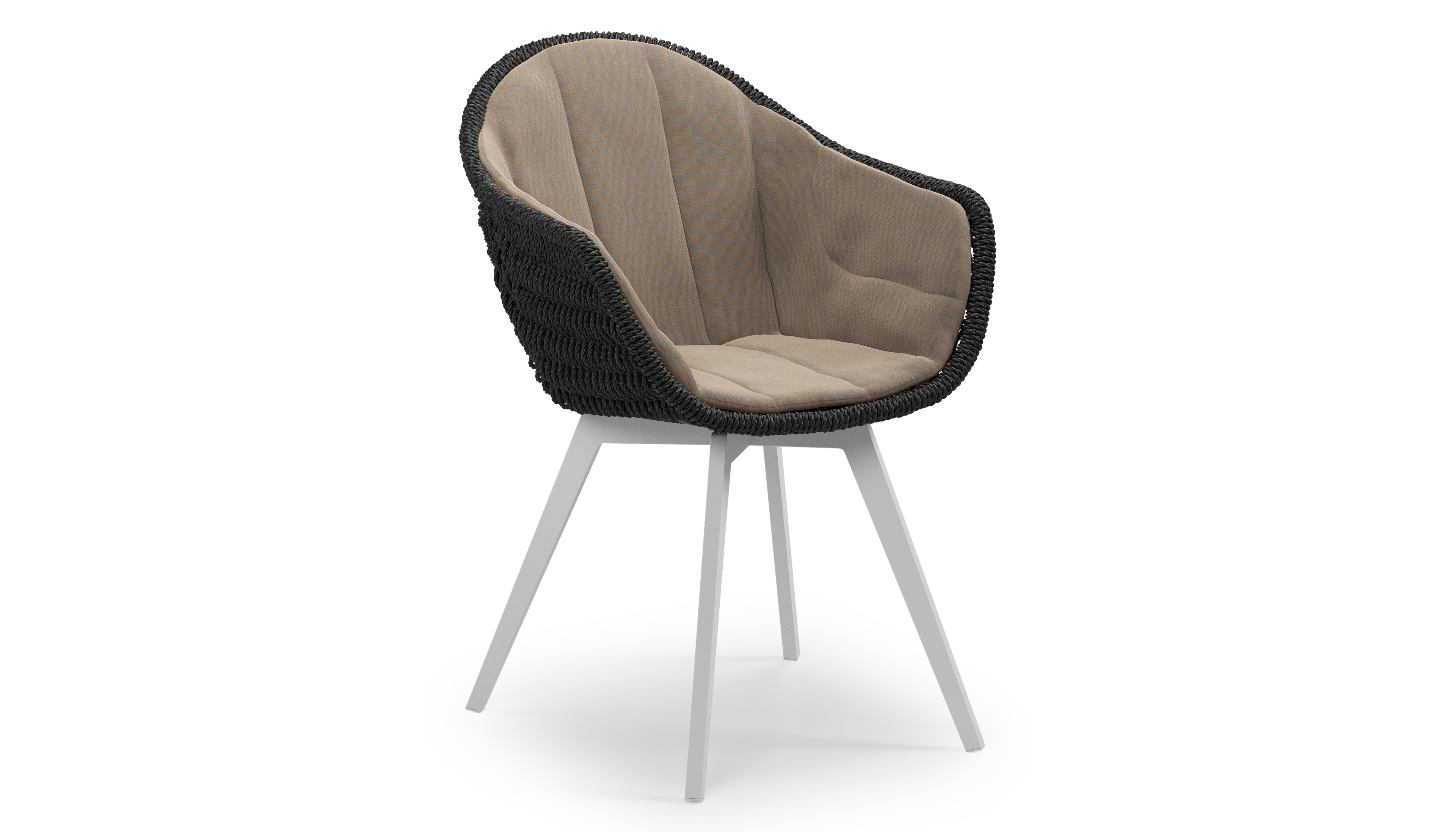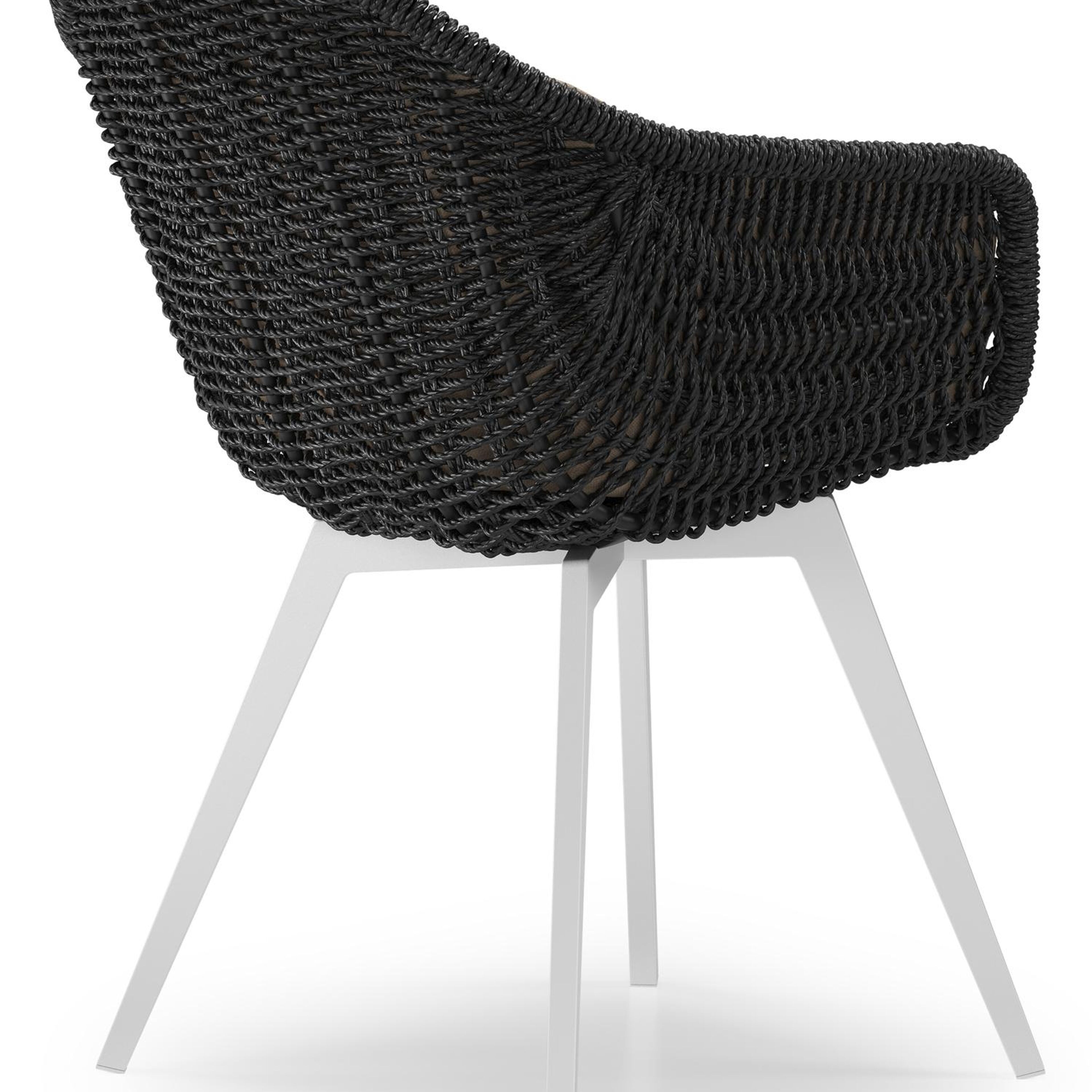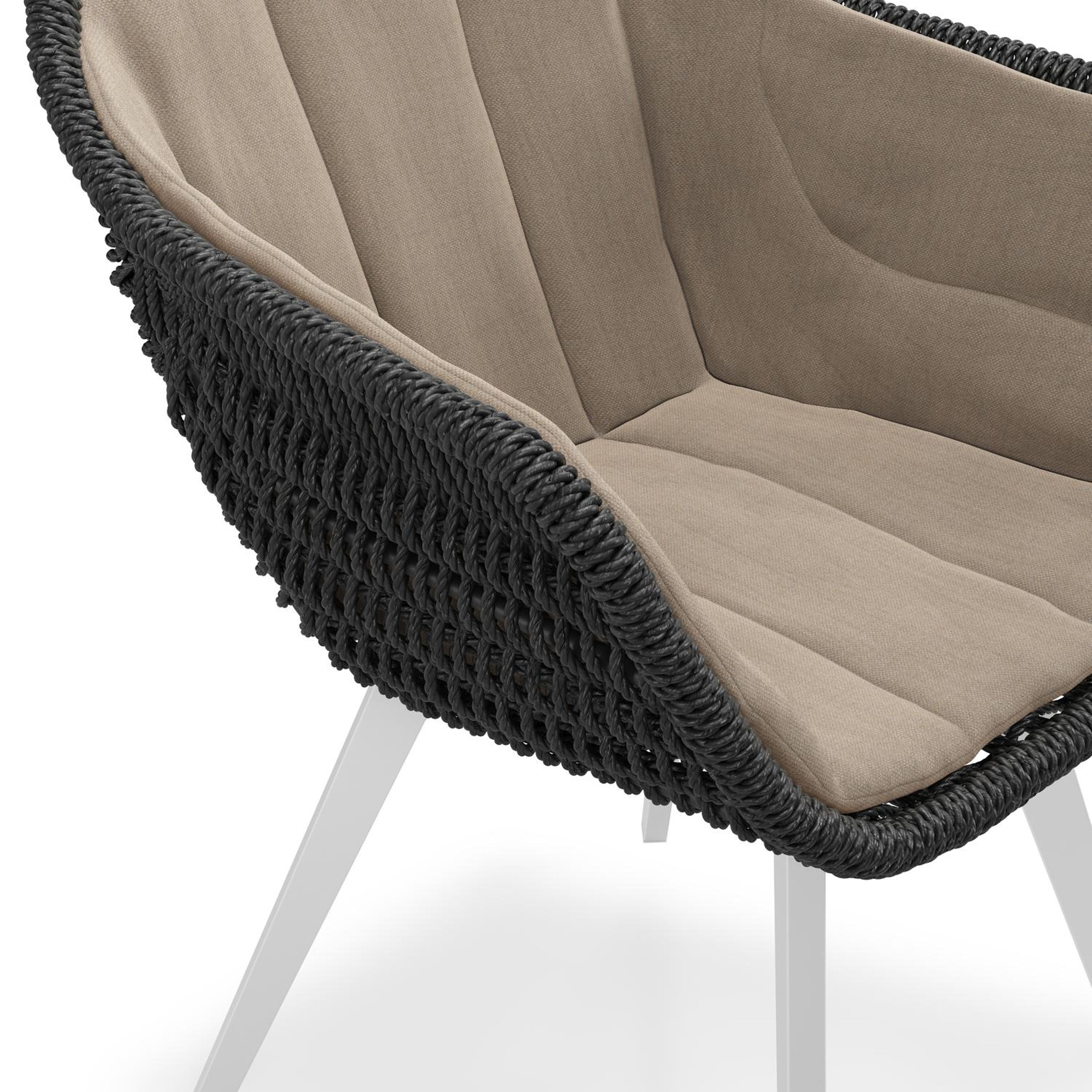 Pagino tuinstoel in wit aluminium en zwart ronde wicker met zitkussen in All Weather Sunbrella® Luxe Natte Heather Grey | Exterioo tuinmeubelen