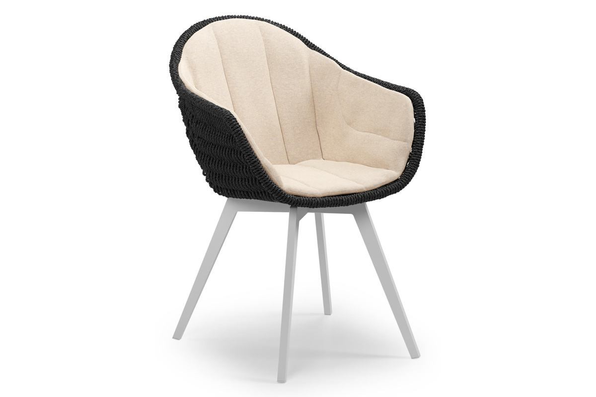 Pagino tuinstoel in wit aluminium en zwart ronde wicker met zitkussen in All Weather Sunbrella® Luxe Heritage Papyrus | Exterioo
