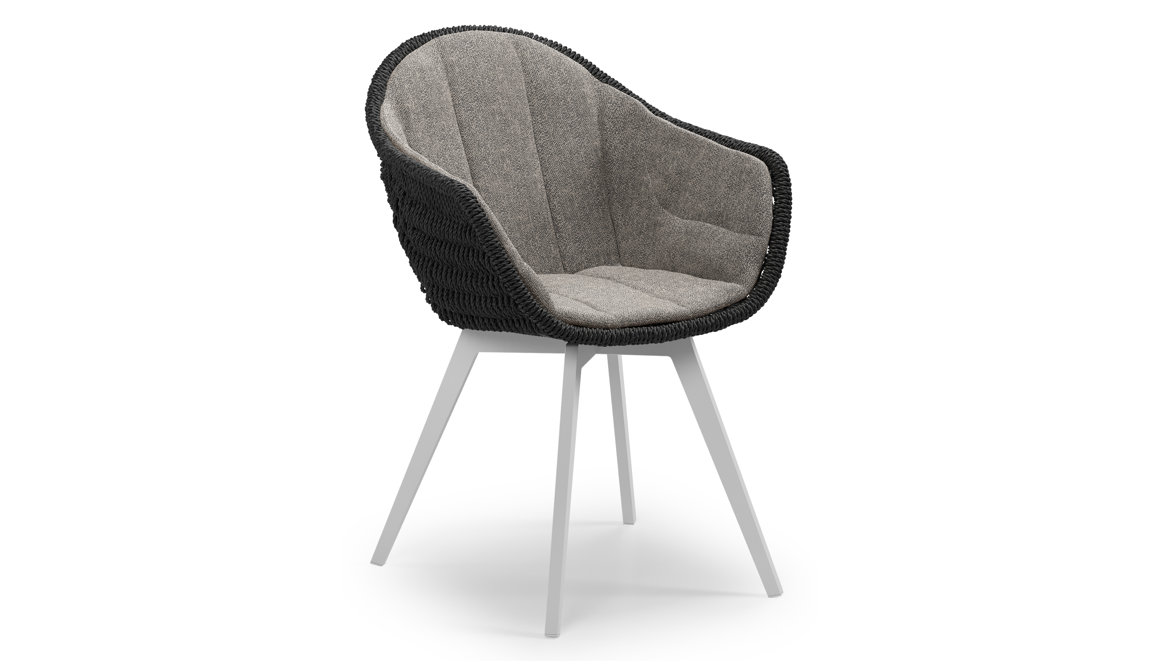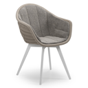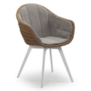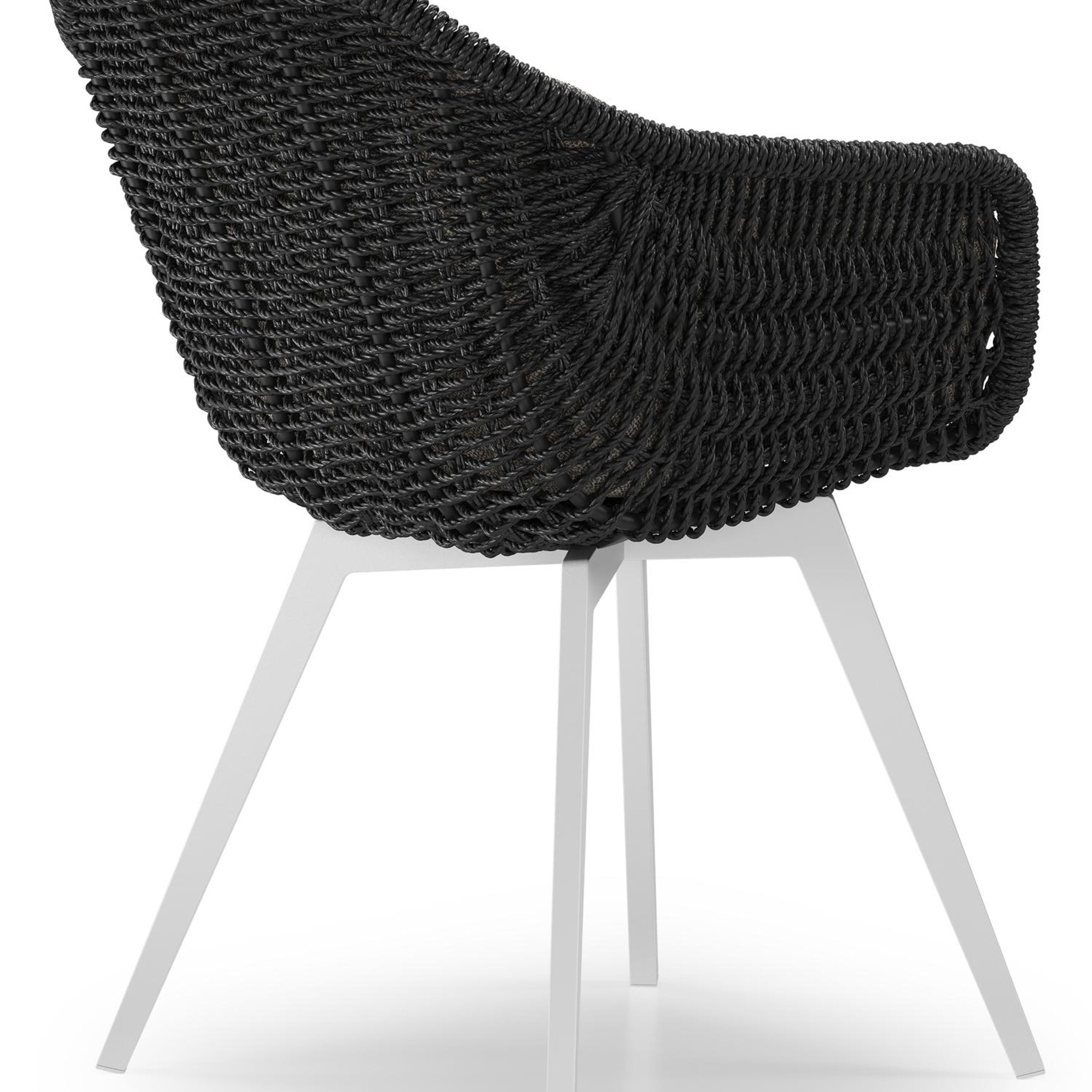 Pagino tuinstoel in wit aluminium en zwart ronde wicker met zitkussen in All Weather Sunbrella® Luxe Chartres Drizzle | Exterioo tuinmeubelen