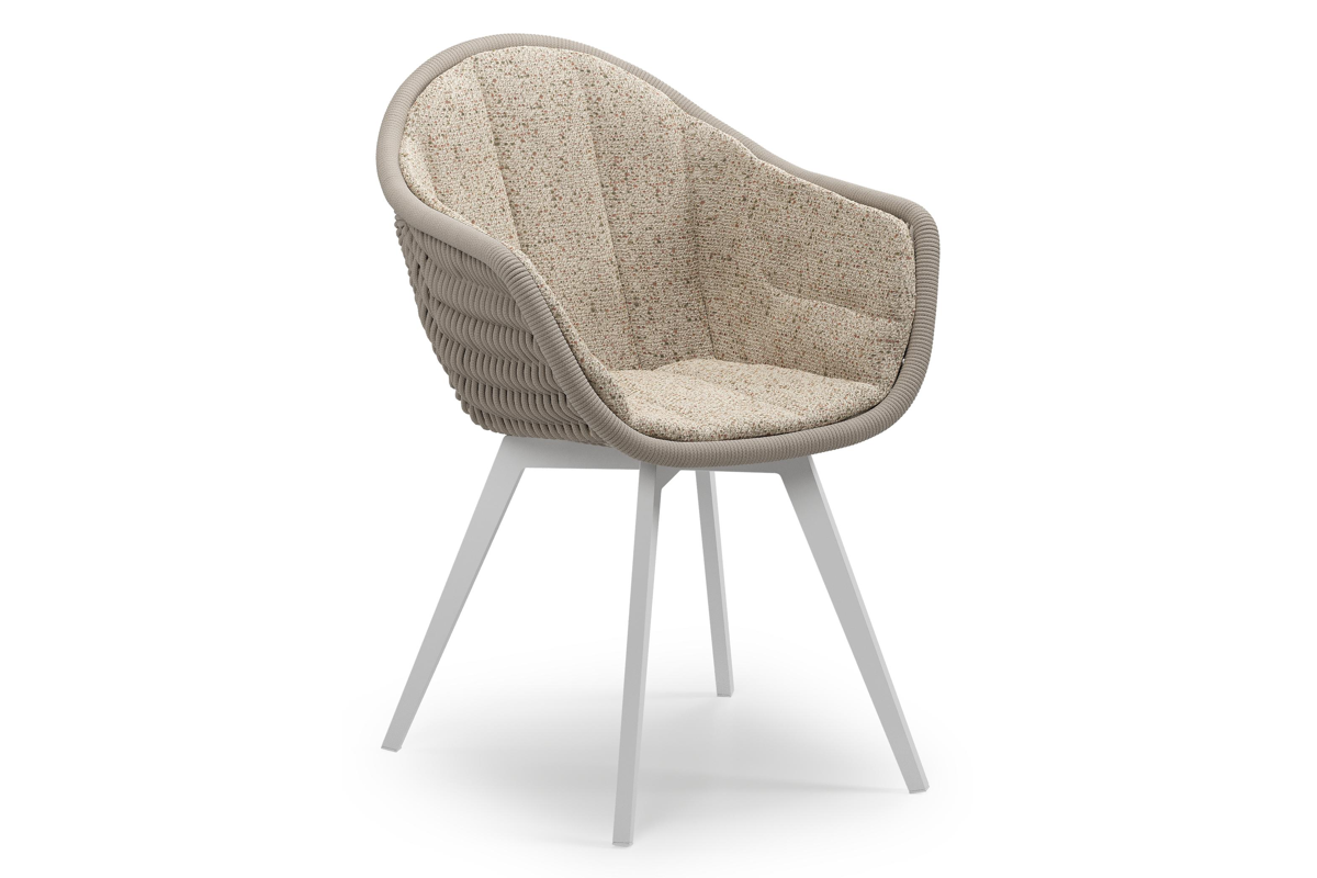 Pagino tuinstoel in wit aluminium en beige verticaal geweven ronde rope met zitkussen in All Weather Cosytica Bora Jungle | Exterioo