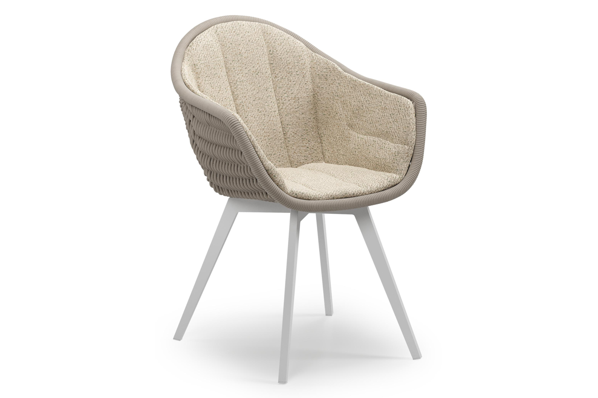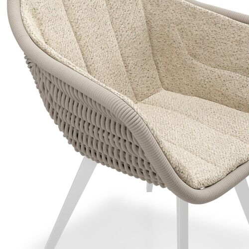 Pagino tuinstoel in wit aluminium en beige verticaal geweven ronde rope met zitkussen in All Weather Cosytica Bora Forest | Exterioo