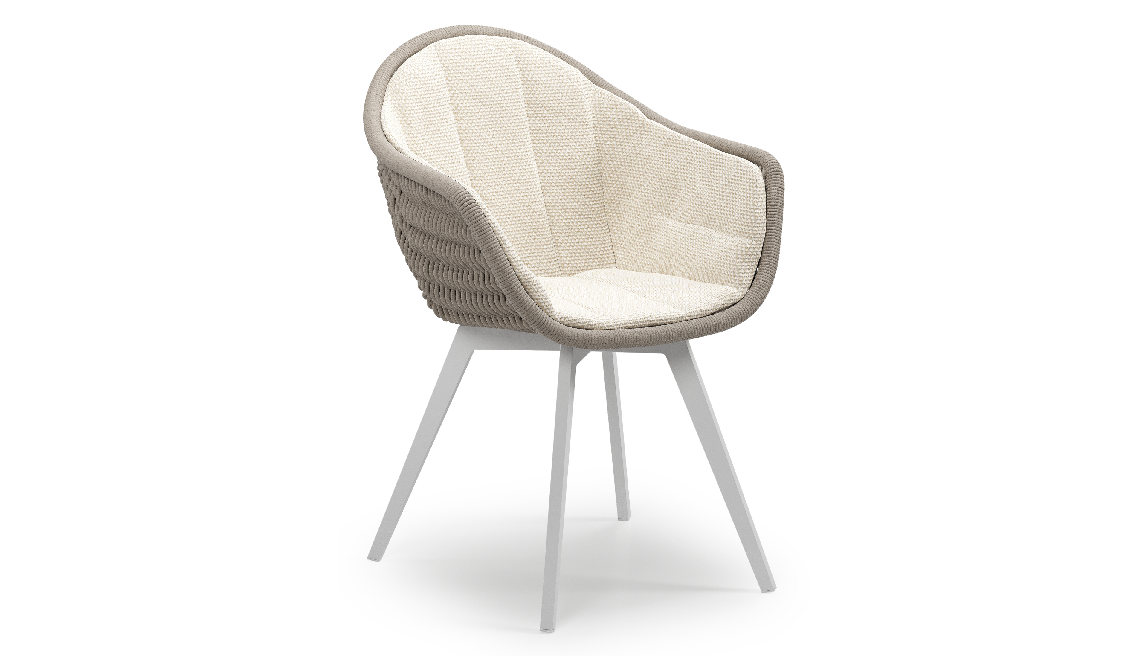 Pagino tuinstoel in wit aluminium en beige verticaal geweven ronde rope met zitkussen in All Weather Cosytica Althea Off White | Exterioo tuinmeubelen
