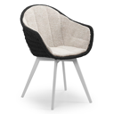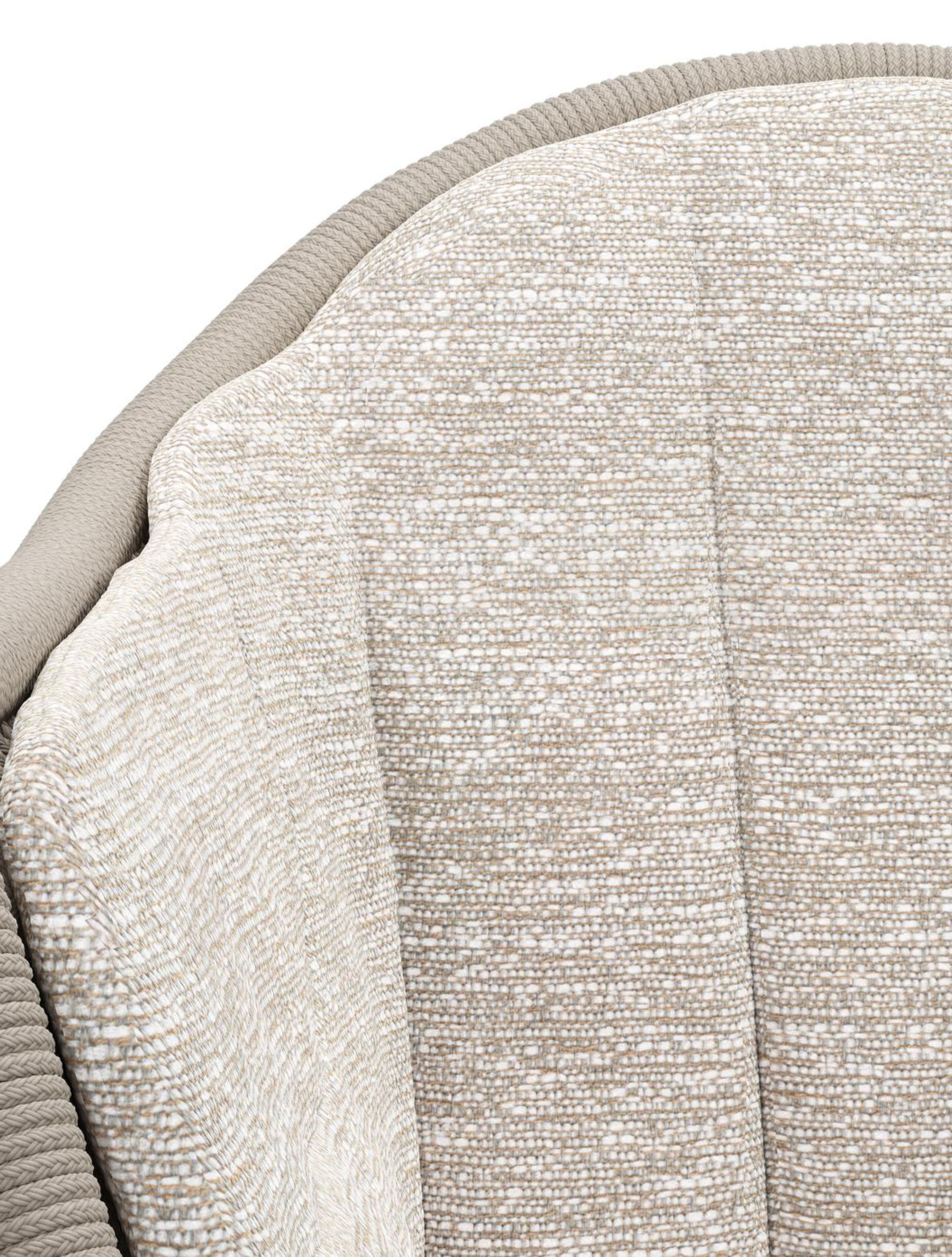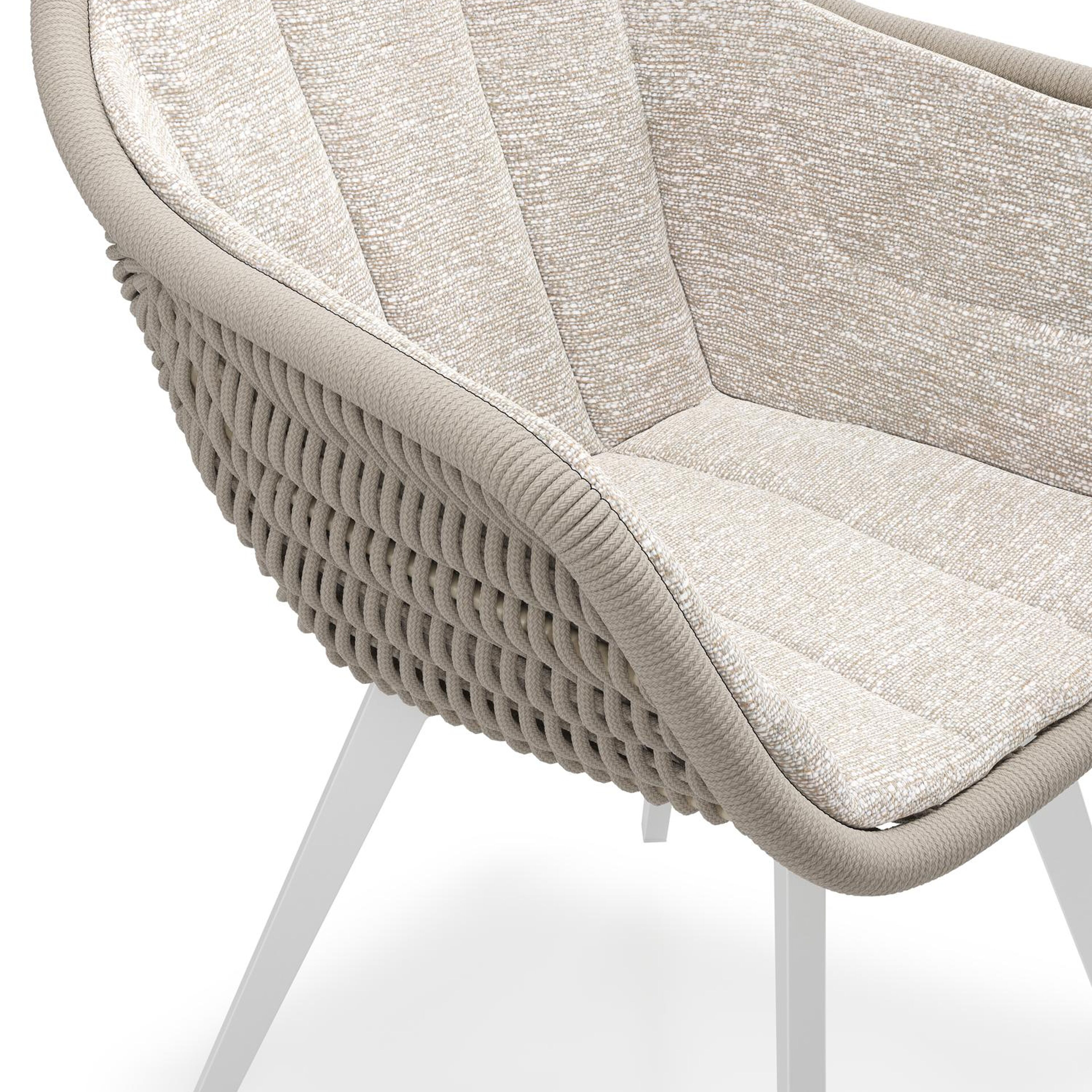 Pagino tuinstoel in wit aluminium en beige verticaal geweven ronde rope met zitkussen in All Weather Sunbrella® Luxe Tundra Sand | Exterioo tuinmeubelen