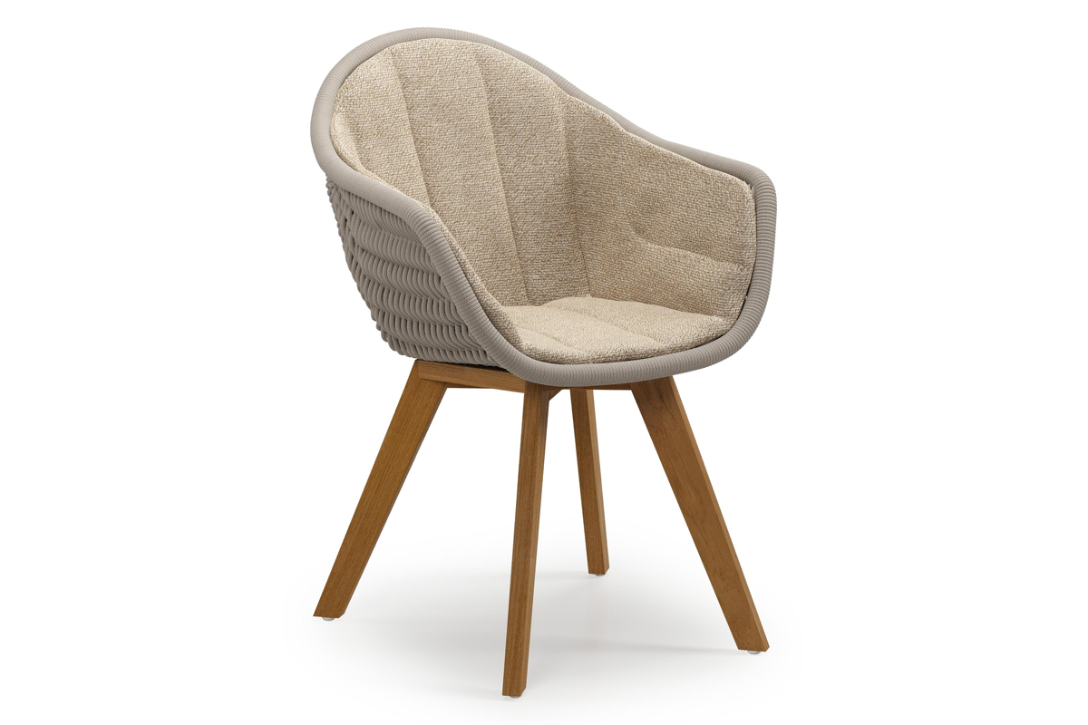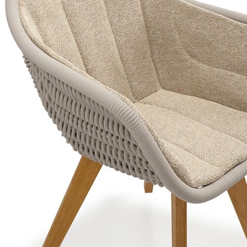 Pagino tuinstoel in teak en beige verticaal geweven ronde rope met kussen in madagascar oak all weather cosytica | Exterioo