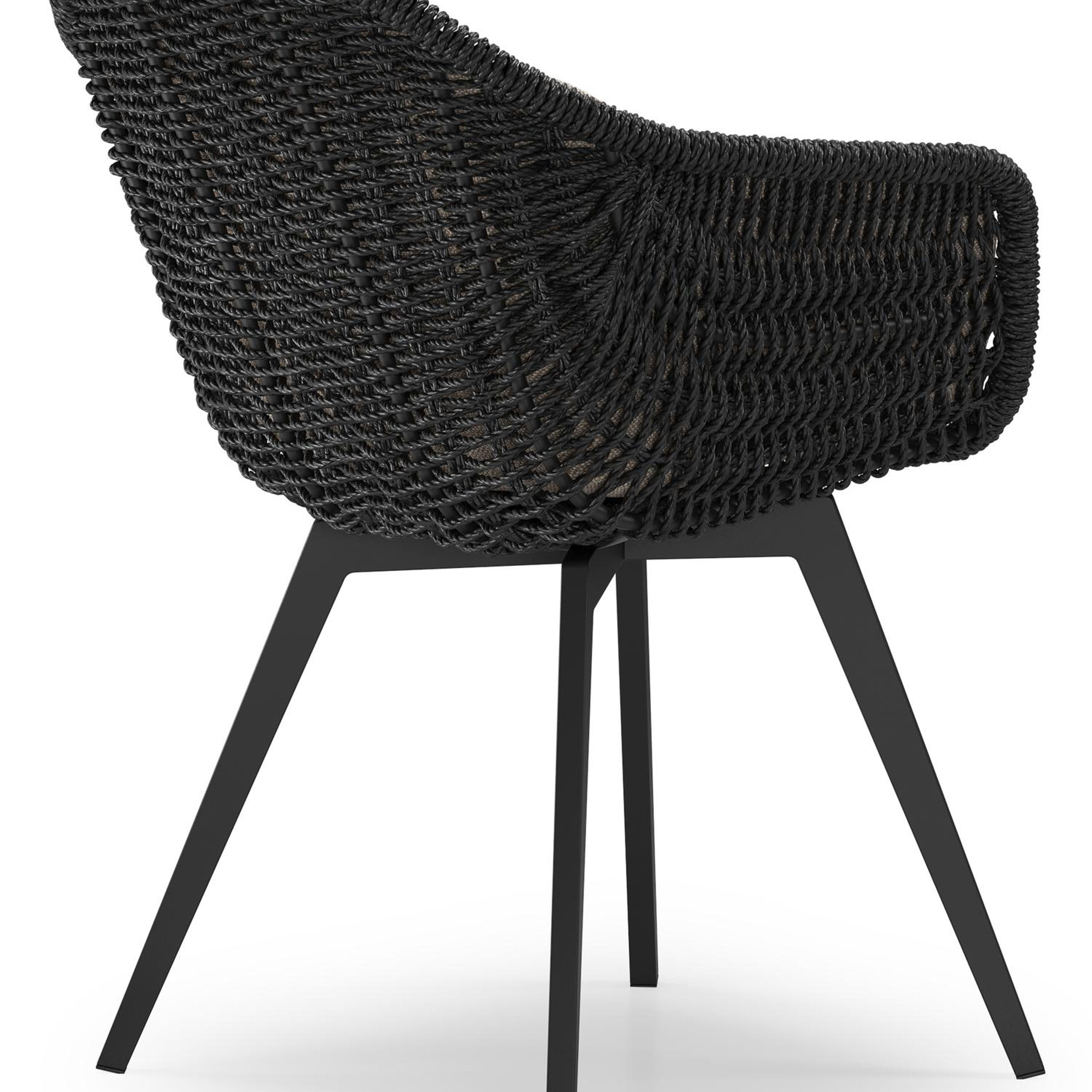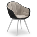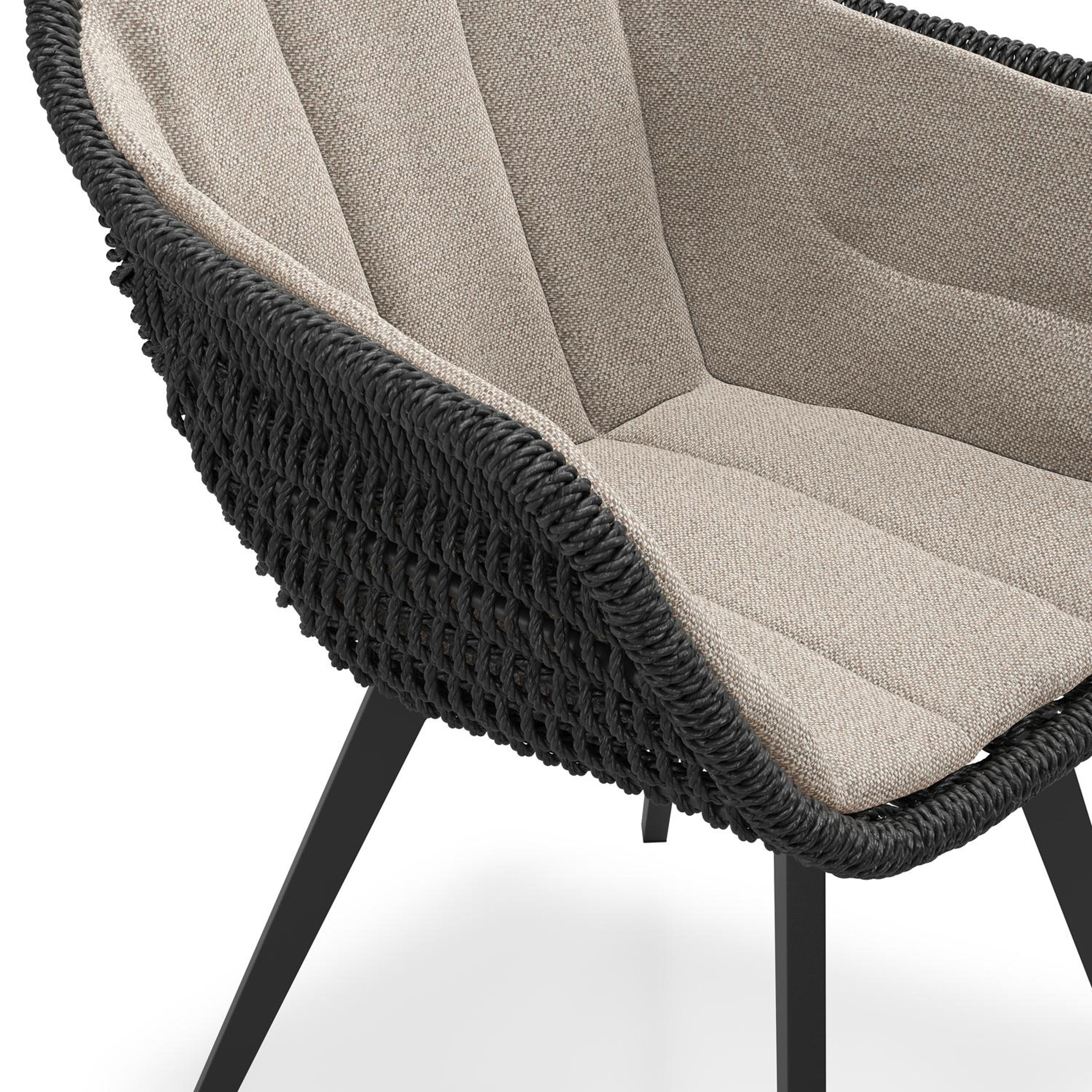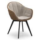 Pagino tuinstoel in zwart aluminium en zwart wicker met kussen in savane coconut all weather sunbrella® luxe | Exterioo tuinmeubelen