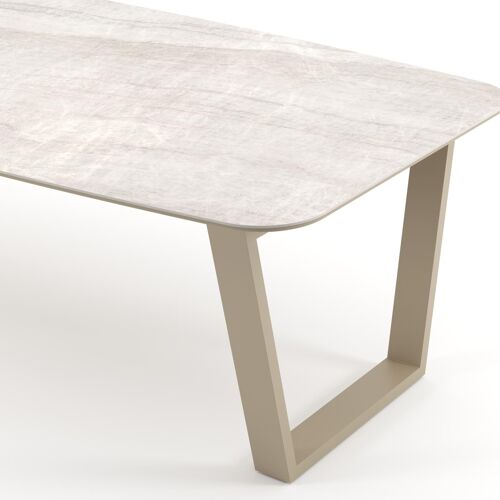Pagino tuintafel bootvorm in beige aluminium en volkeramiek Taj Mahal - L 255 x B 115 x H 73 cm | Exterioo