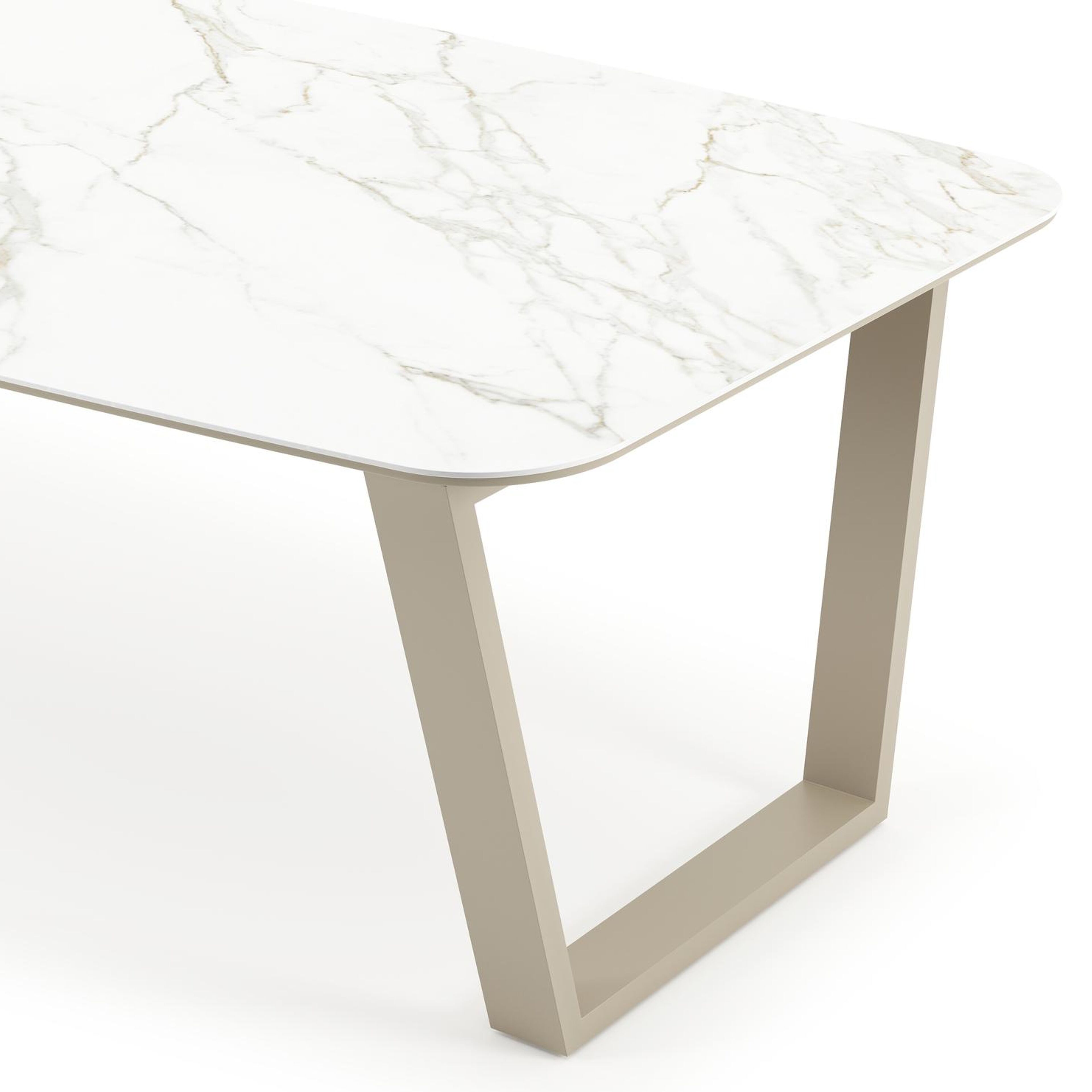 Pagino tuintafel bootvorm in beige aluminium en volkeramiek Calacatta - L 255 x B 115 x H 73 cm | Exterioo tuinmeubelen