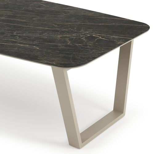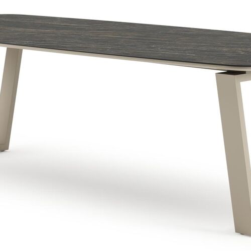 Pagino tuintafel bootvorm in beige aluminium en volkeramiek Black Obsession - L 255 x B 115 x H 73 cm | Exterioo