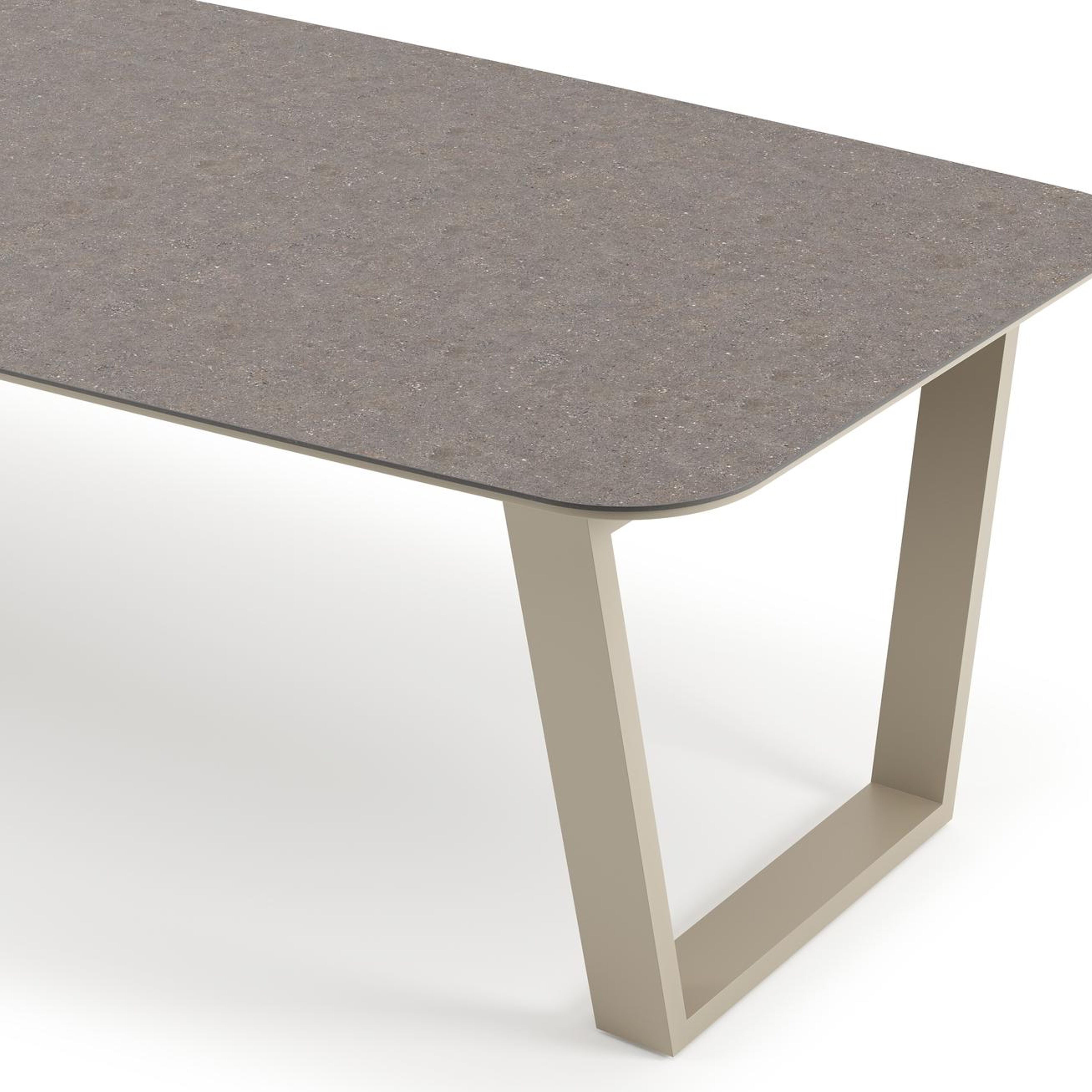 Pagino tuintafel bootvorm in beige aluminium en volkeramiek Wulong - L 315 x B 115 x H 73 cm | Exterioo tuinmeubelen