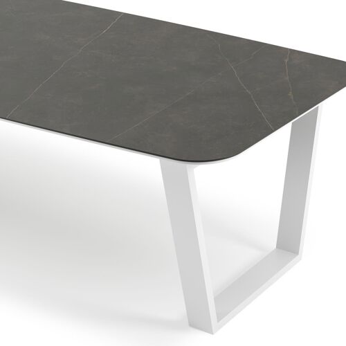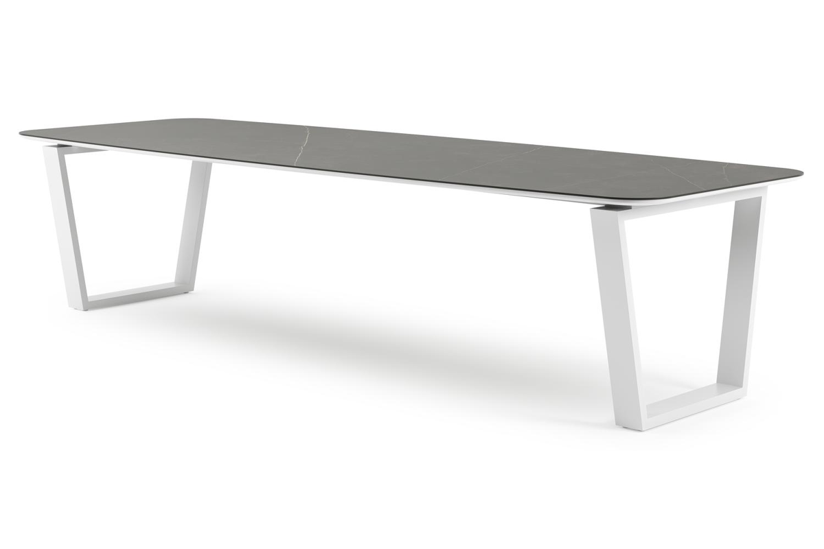Pagino tuintafel bootvorm in wit aluminium en volkeramiek Calatorao - L 315 x B 115 x H 73 cm | Exterioo