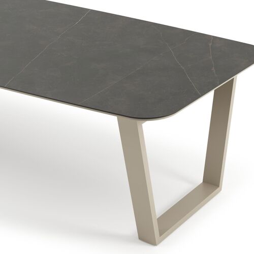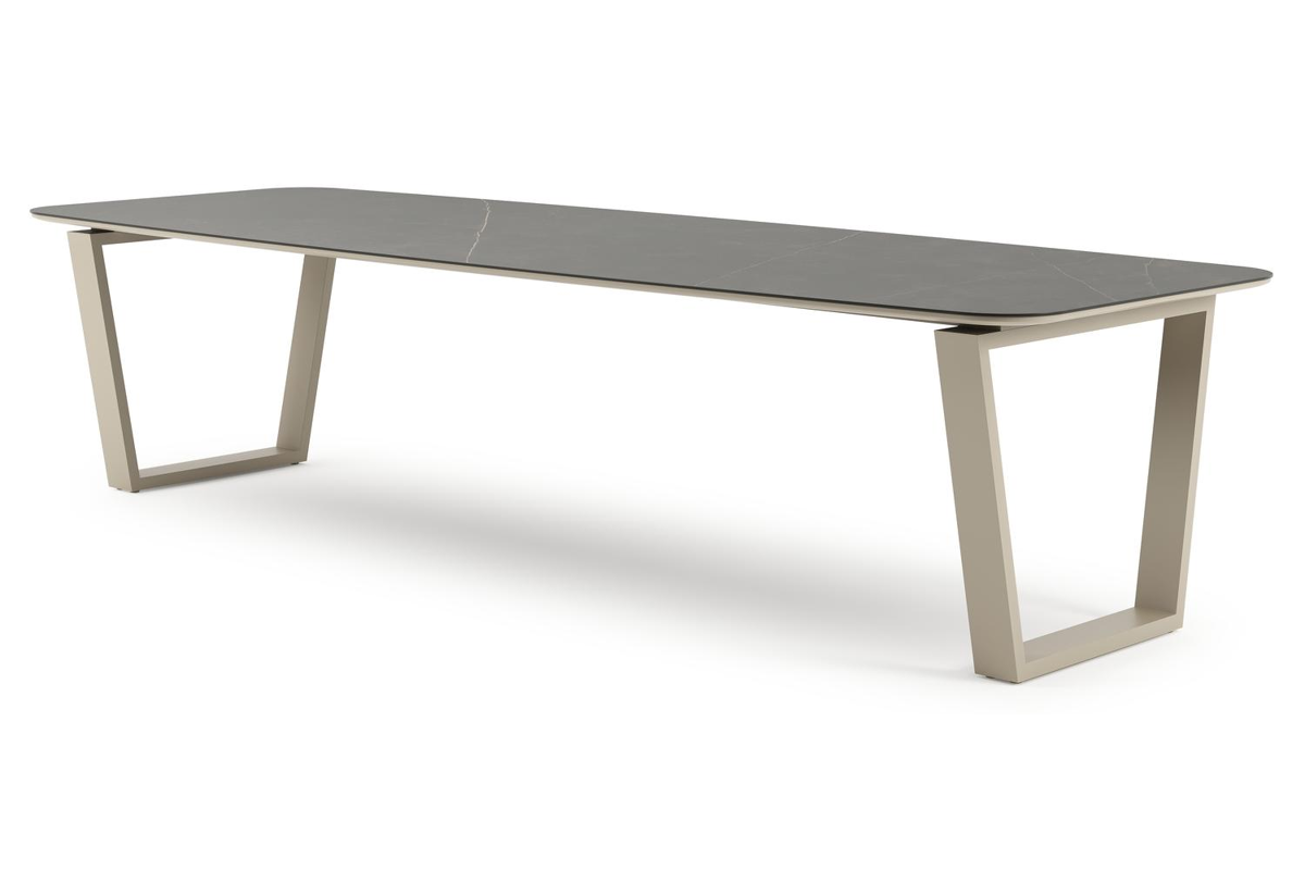 Pagino tuintafel bootvorm in beige aluminium en volkeramiek Calatorao - L 315 x B 115 x H 73 cm | Exterioo