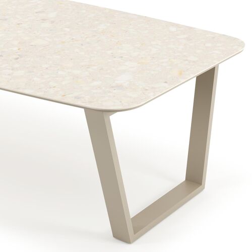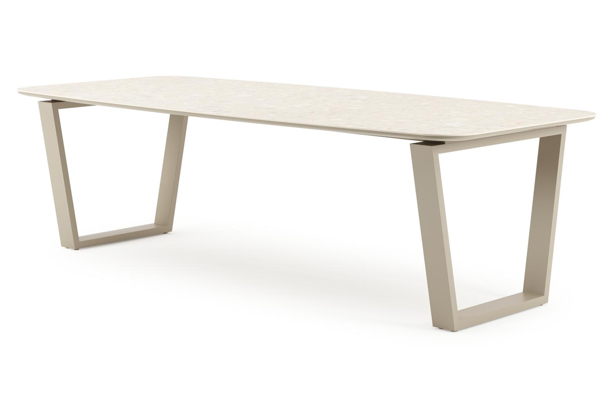 Pagino tuintafel bootvorm in beige aluminium en volkeramiek Retrostone L 255 x B 115 x H 73 cm x H 73 cm | Exterioo