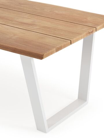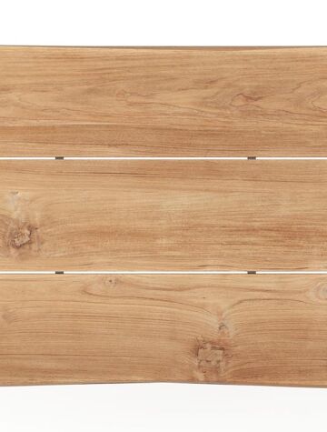 Een tafelblad uit teak staat gelijk aan bijzondere kwaliteit en natuurlijk design. Teak is een kwalitatieve houtsoort gekenmerkt door zijn hardheid. Aangezien hout leeft, kan de structuur of kleur licht anders zijn dan op het beeld weergegeven.