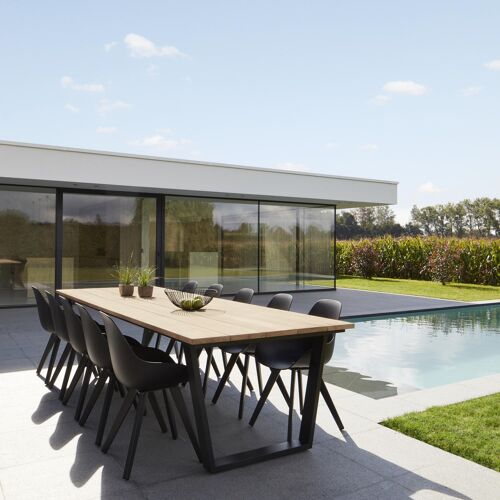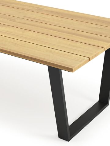 Pagino tuintafel rechthoekig in zwart aluminium en teak - L 340 x B 110 x H 73,5 cm | Exterioo
