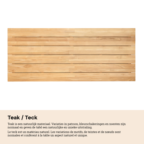 De Pagino tafel heeft een stijlvol, trapeziumvormig onderstel. Het frame is gemaakt van aluminium een licht, maar sterk en roestvrij materiaal dat zeer geschikt is voor tuinmeubelen.Deze tafel is afgewerkt met een tafelblad in teak. Dit zorgt voor een warme en natuurlijke touch.