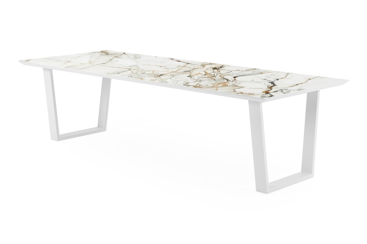 De Pagino tuintafel straalt een verfijnd en authentiek karakter uit, het punt waar jouw buitenmoment en de natuur elkaar raken door het oog voor design. Het weidse en robuuste ontwerpt komt terug in het het karaktervolle frame met doorlopende trapeziumpoot.