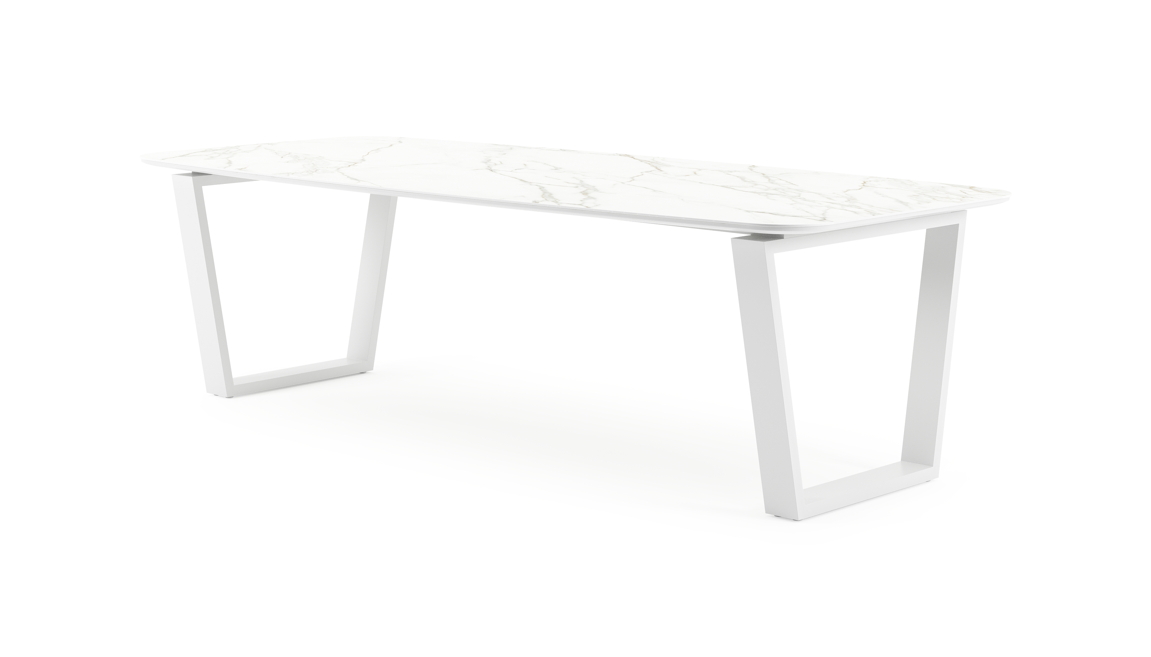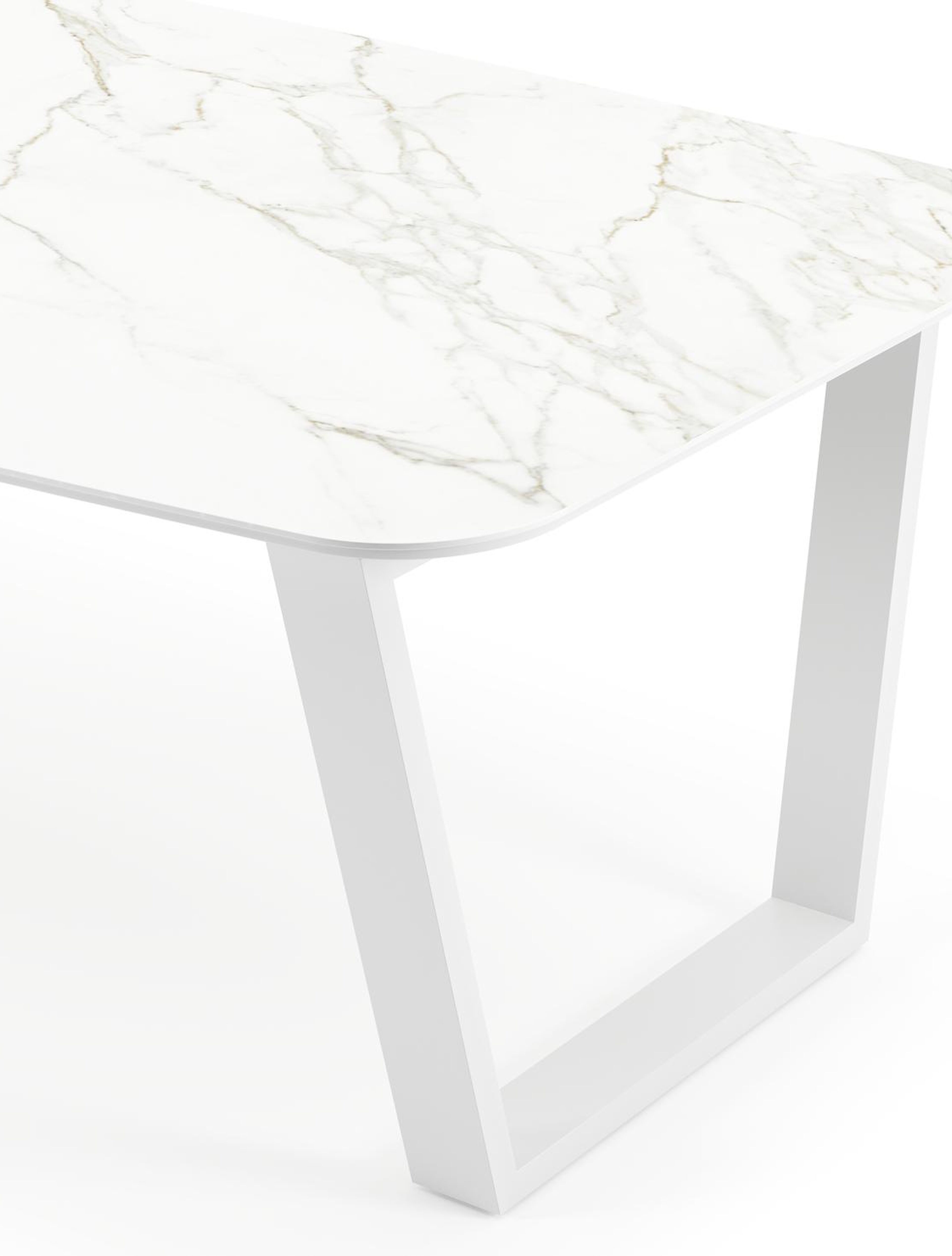 Calacatta is een tafelblad met witte basis die afgewerkt is met grijze aders voor een karakteristieke marmerlook.