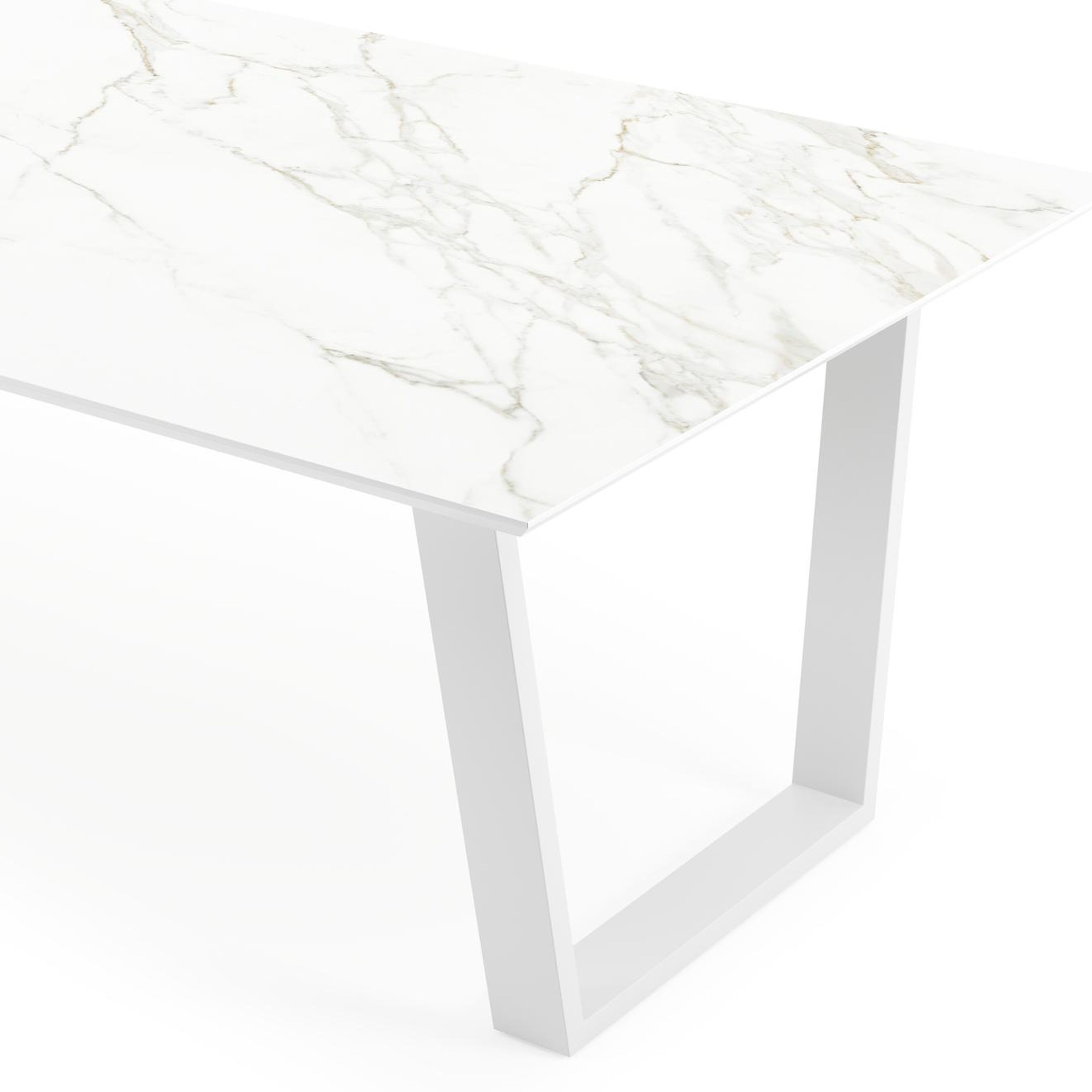 Calacatta is een tafelblad met witte basis die afgewerkt is met grijze aders voor een karakteristieke marmerlook.