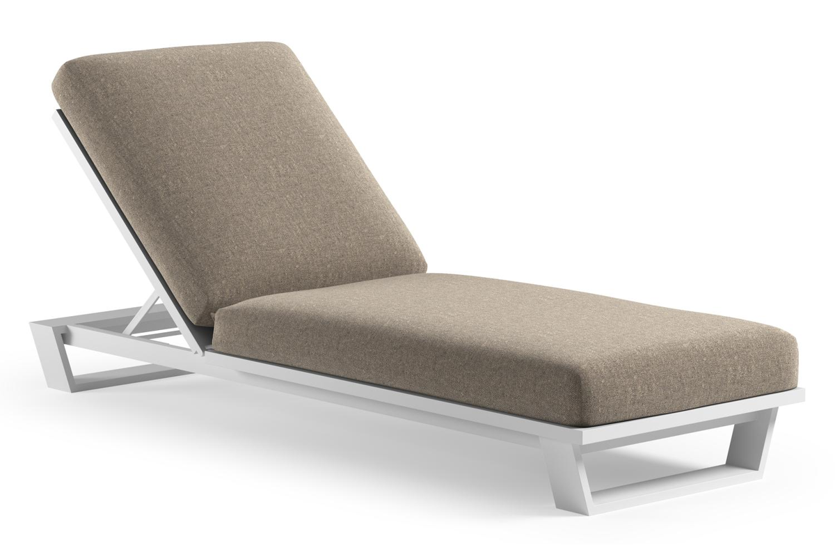 Pagino verstelbaar ligbed in wit aluminium met chartres pewter all weather Sunbrella® luxe kussen | Exterioo
