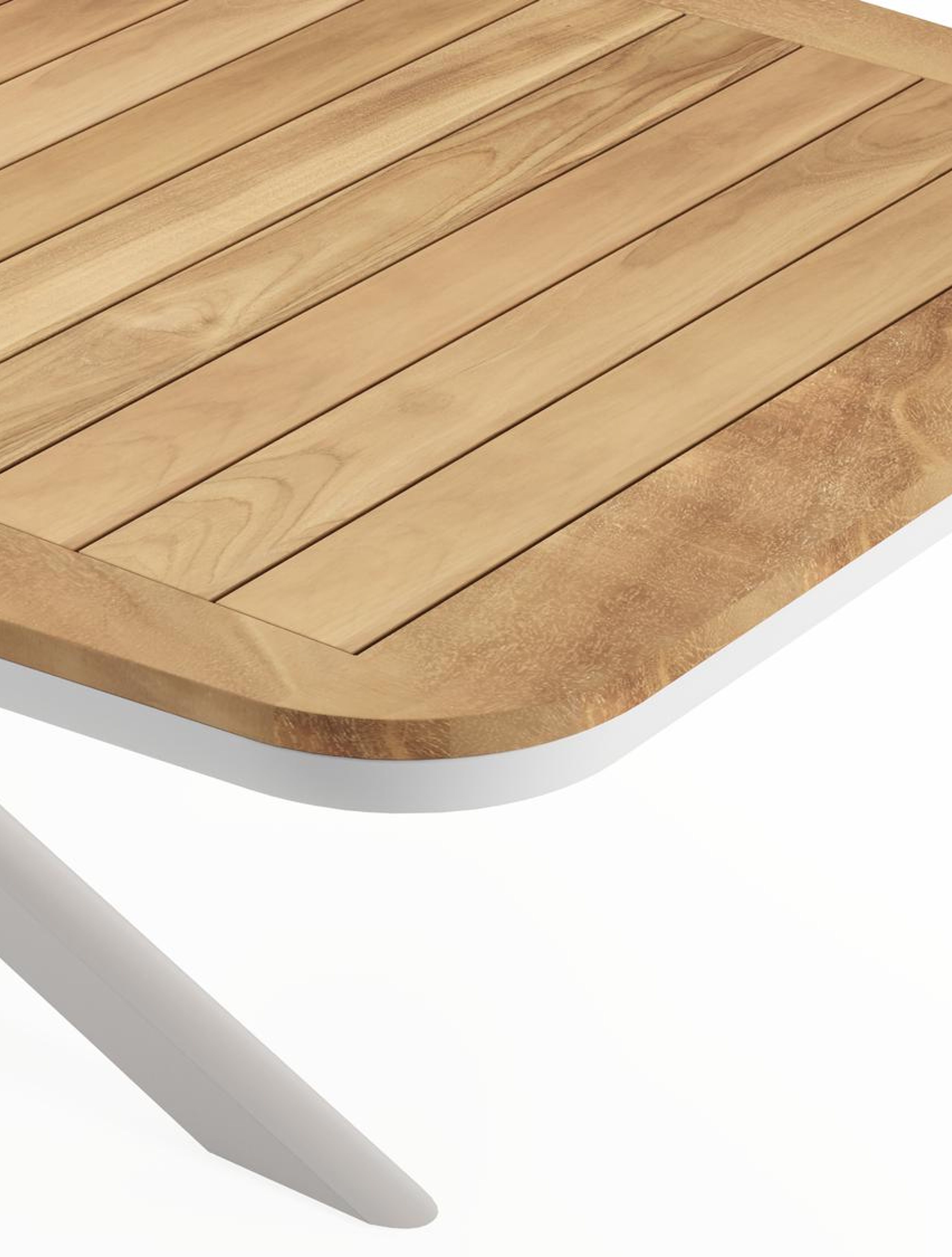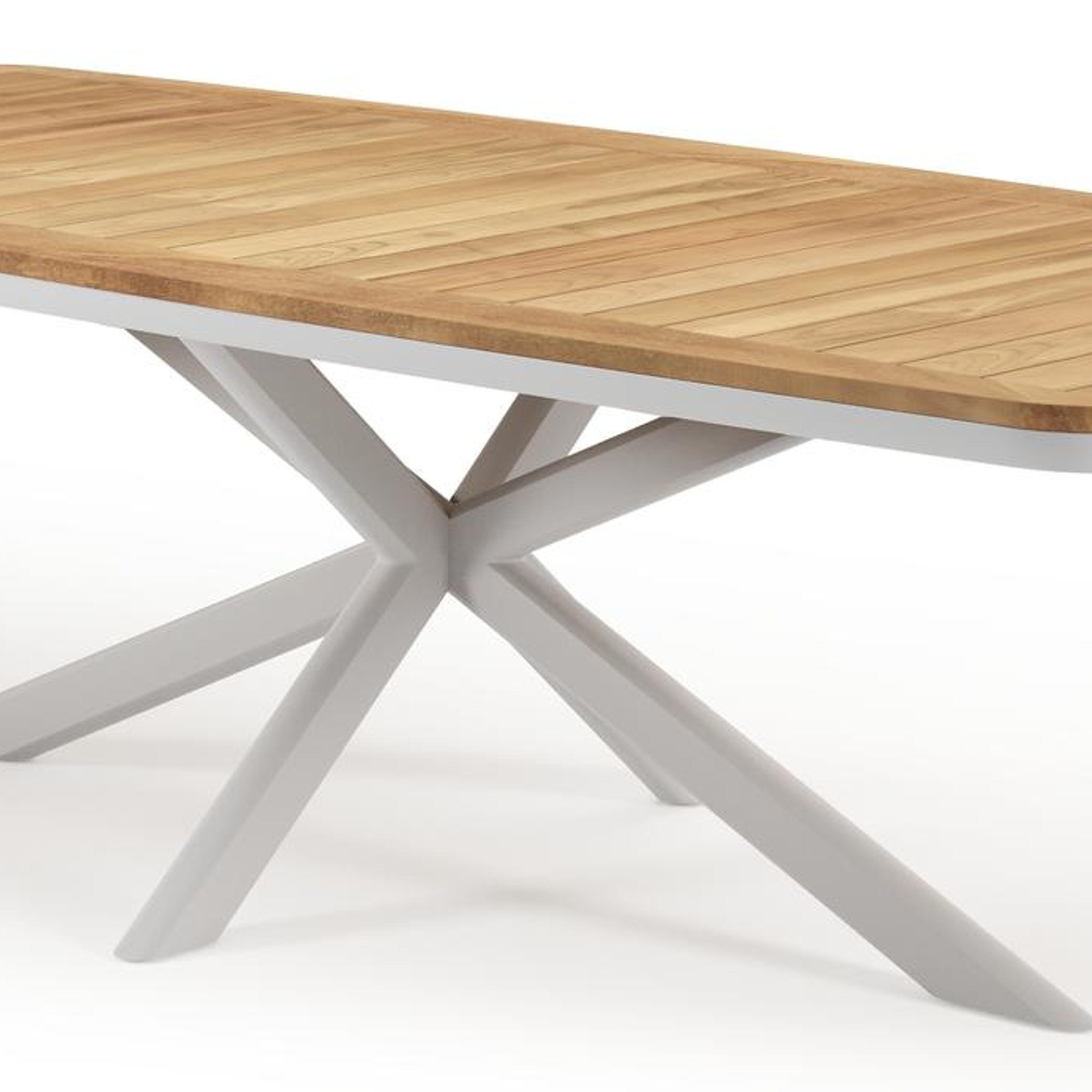 Pamplona bootvormige tuinset in wit aluminium en teak natural finish met 10 Cosa tuinstoelen | Exterioo tuinmeubelen