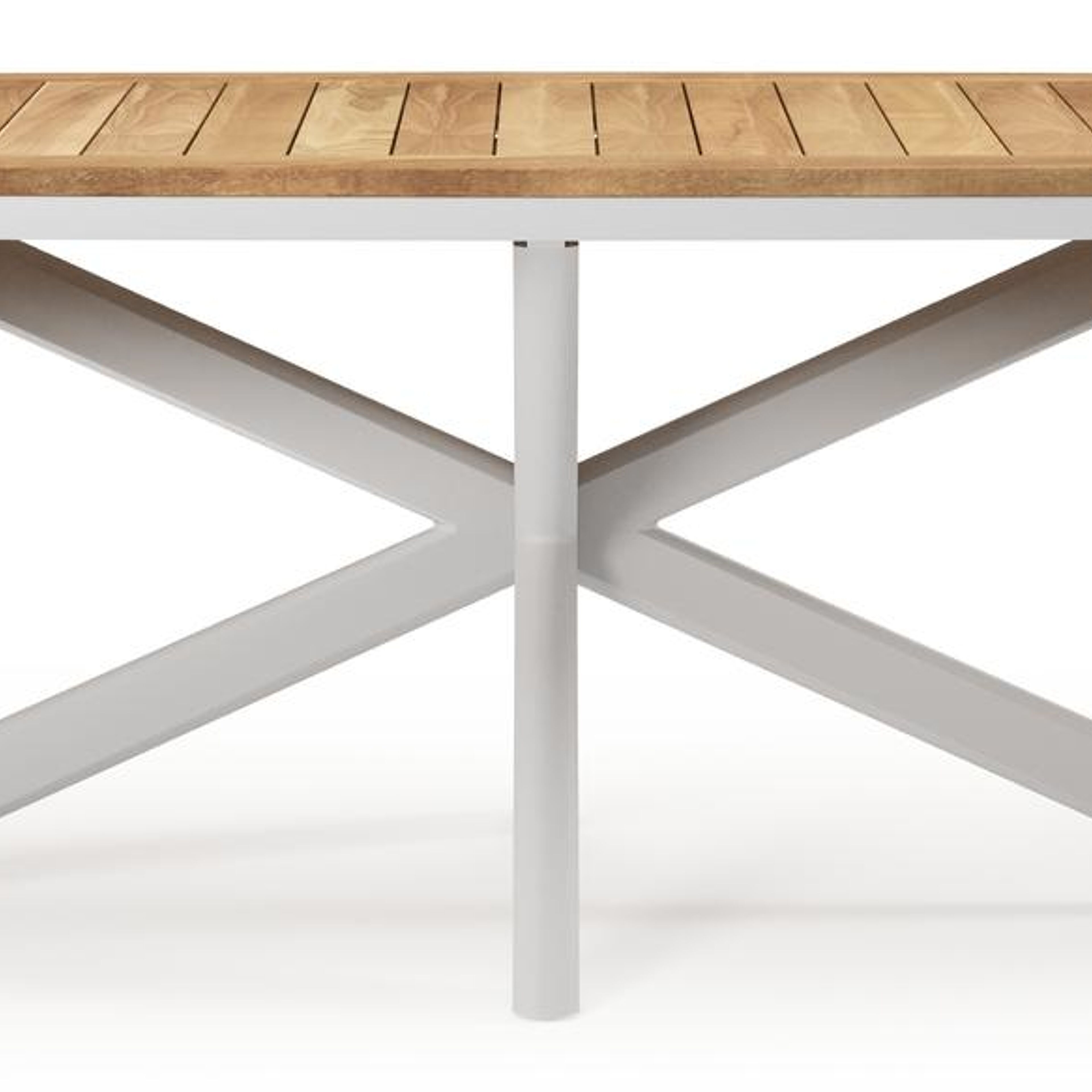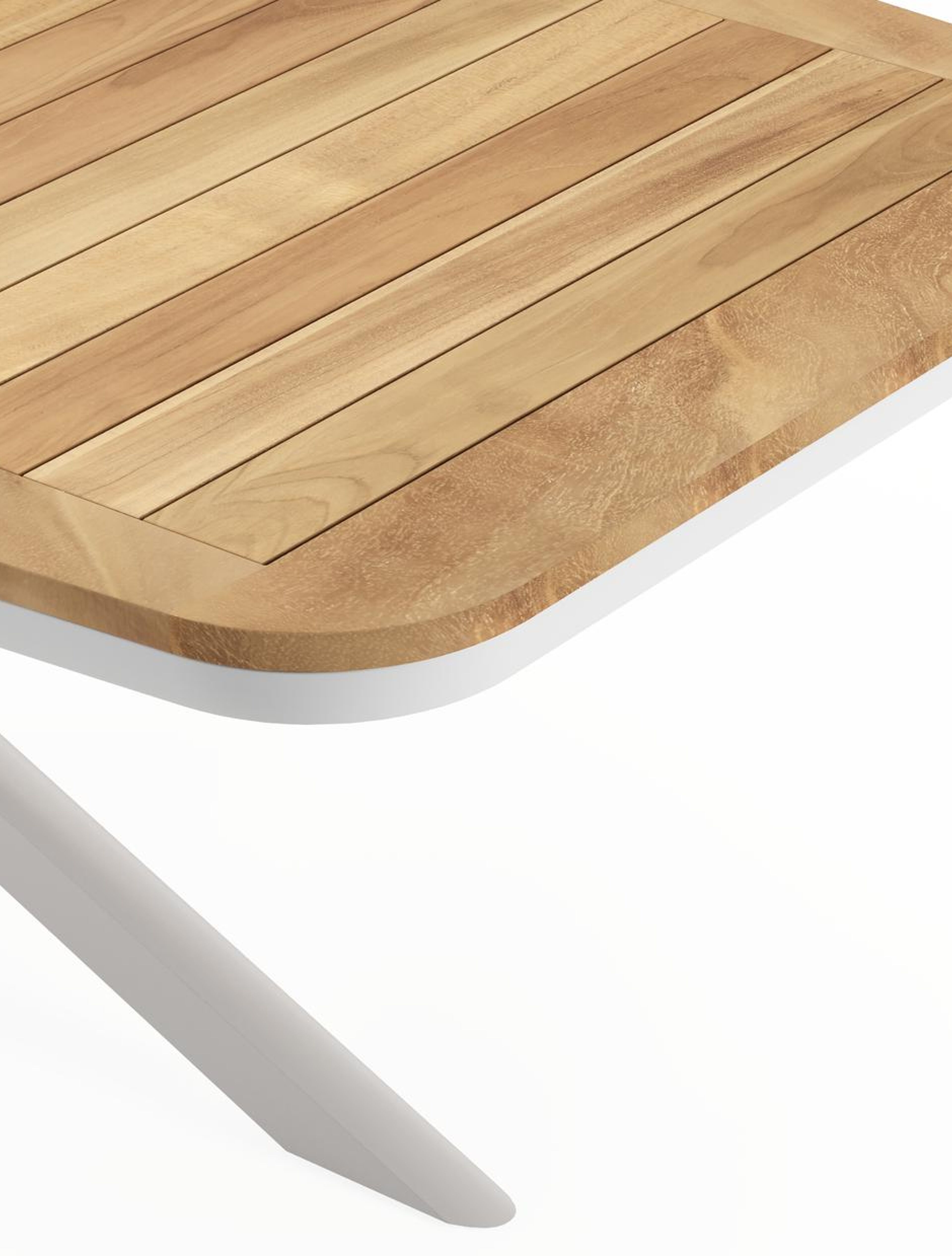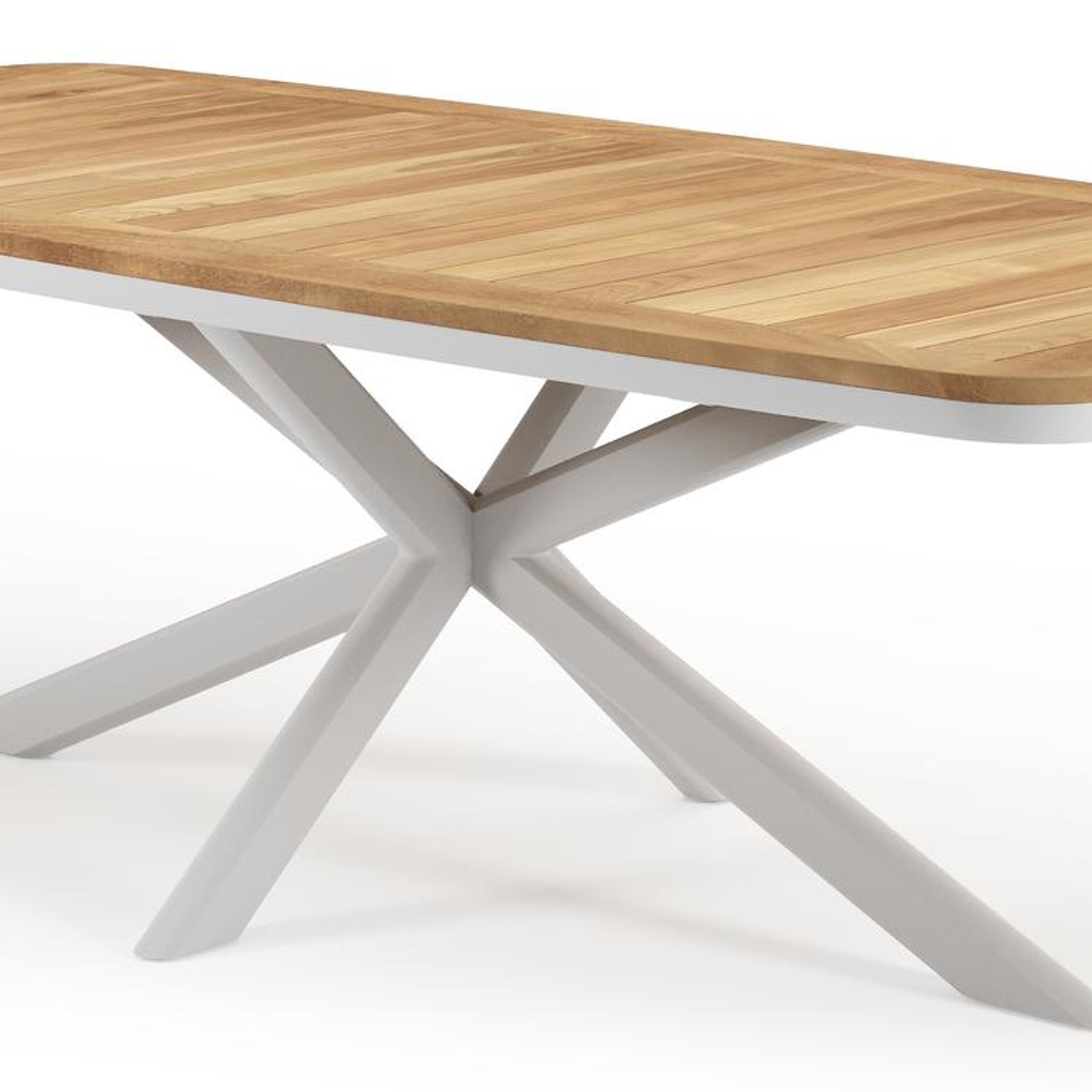 Pamplona bootvormige tuinset in wit aluminium en teak natural finish met 8 Cosa tuinstoelen | Exterioo tuinmeubelen