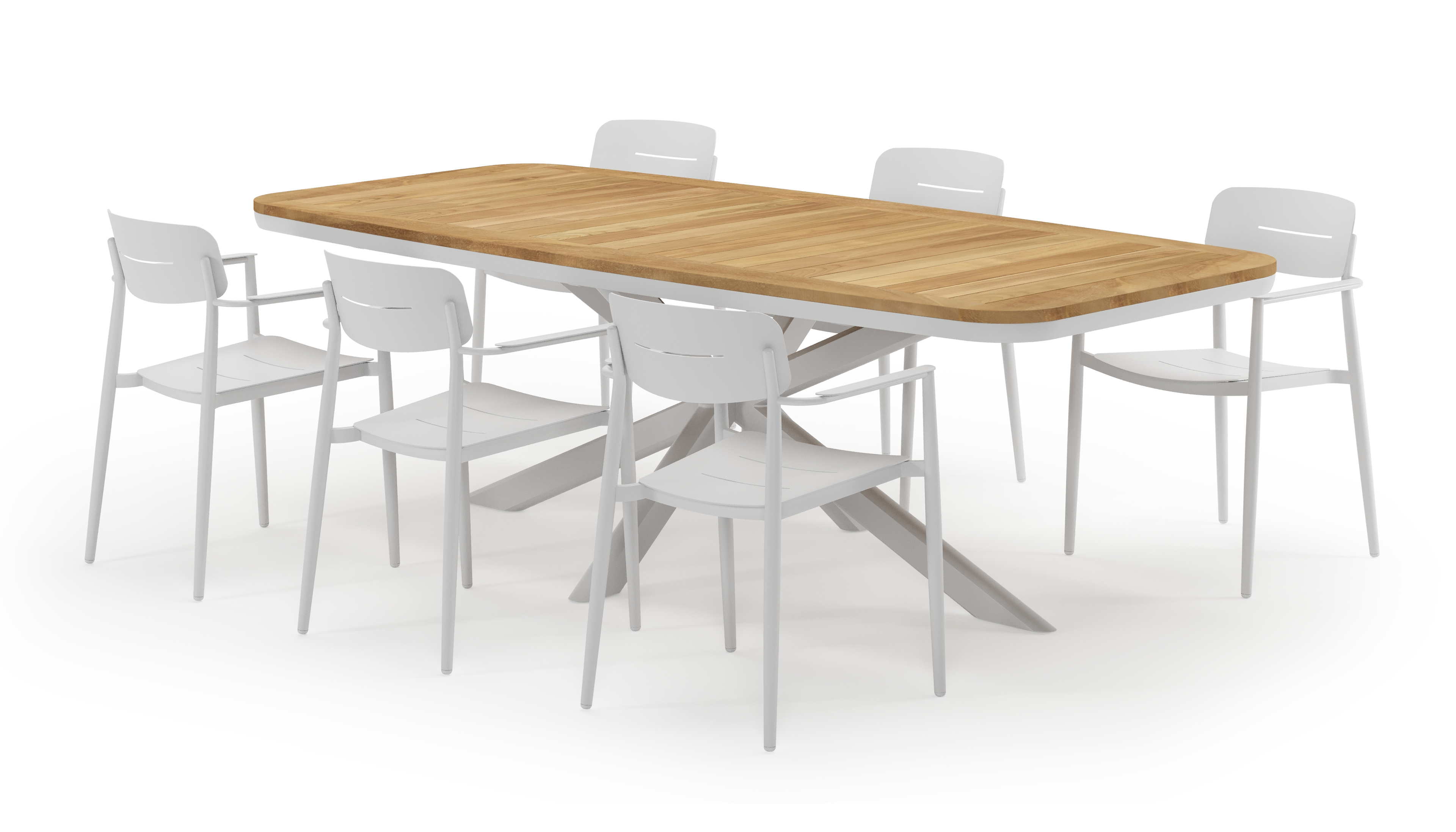 De Pamplona tuinset straalt met zijn afgeronde vorm en opvallende kruispoot een robuuste hedendaagse look uit. Deze tuinset is ideaal voor een groot gezelschap.