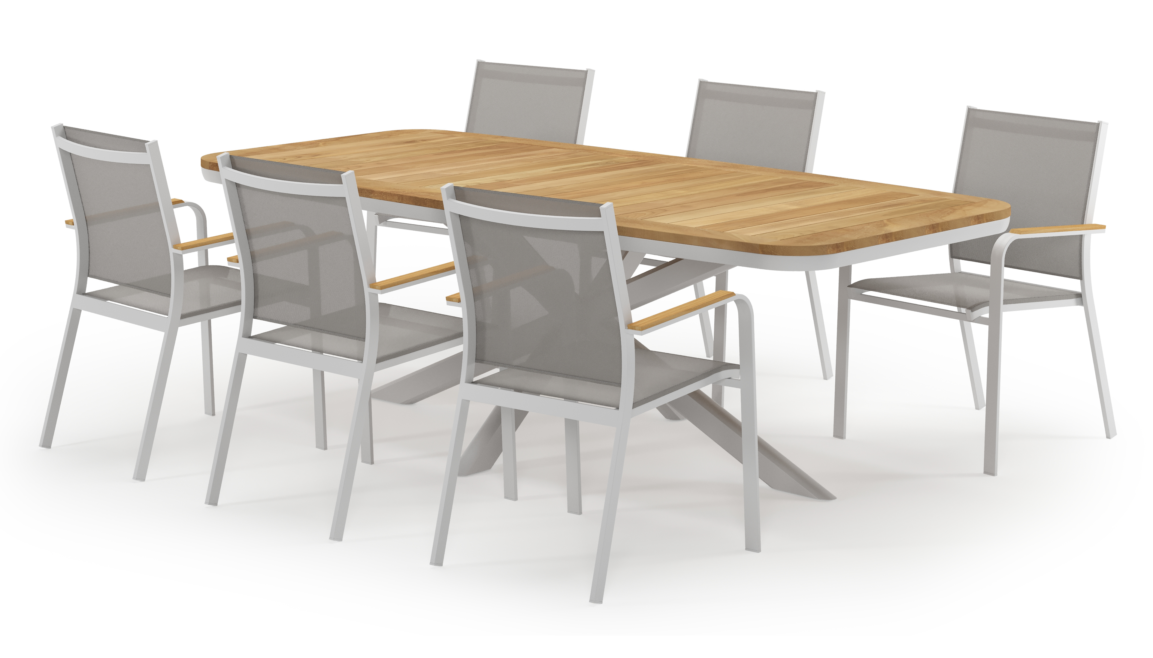 De Pamplona tuinset straalt met zijn afgeronde vorm en opvallende kruispoot een robuuste hedendaagse look uit. Deze tuinset is ideaal voor een groot gezelschap.