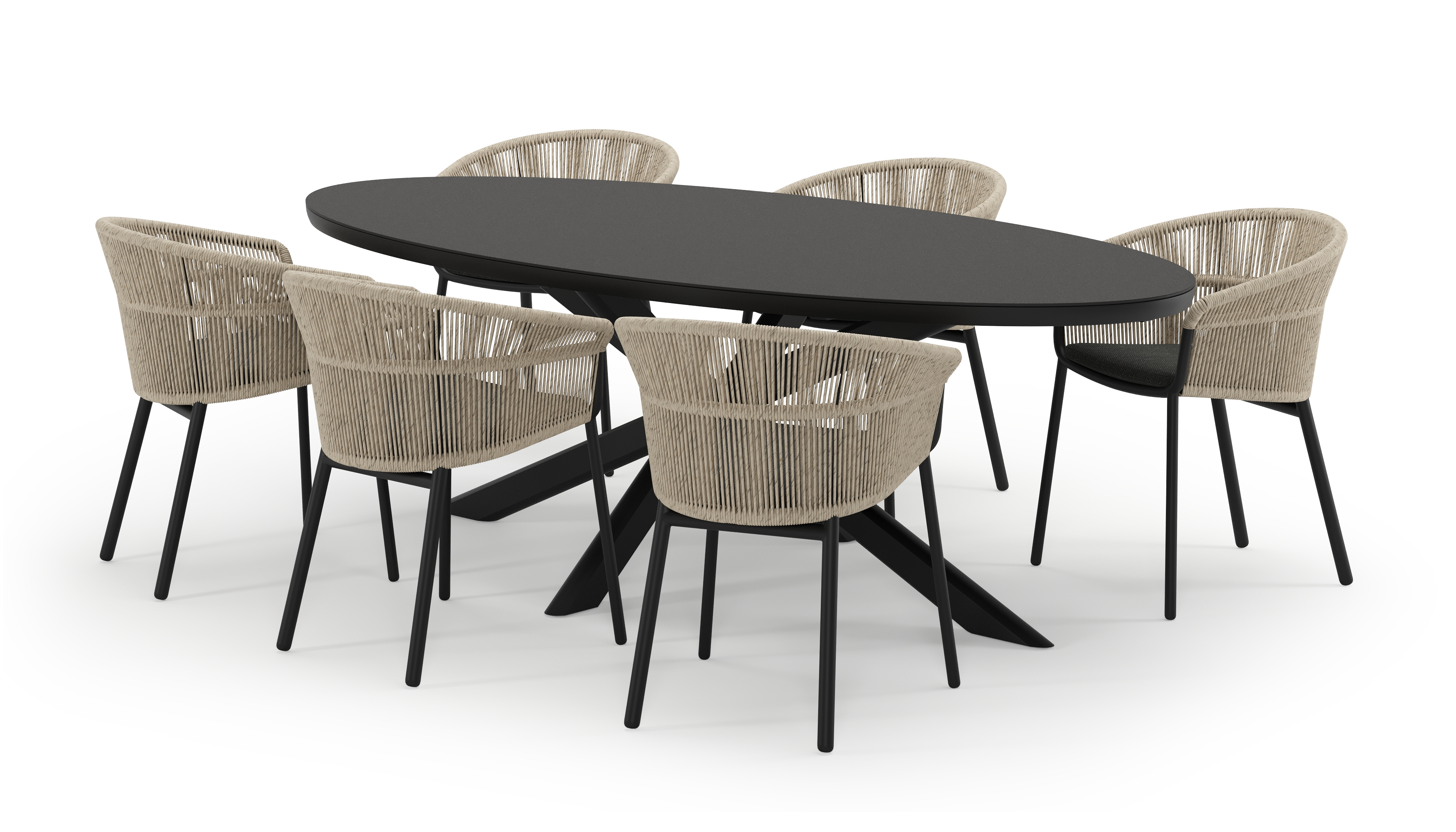 De Pamplona tuinset straalt met zijn afgeronde vorm en opvallende kruispoot een robuuste hedendaagse look uit. Deze tuinset is ideaal voor een groot gezelschap.