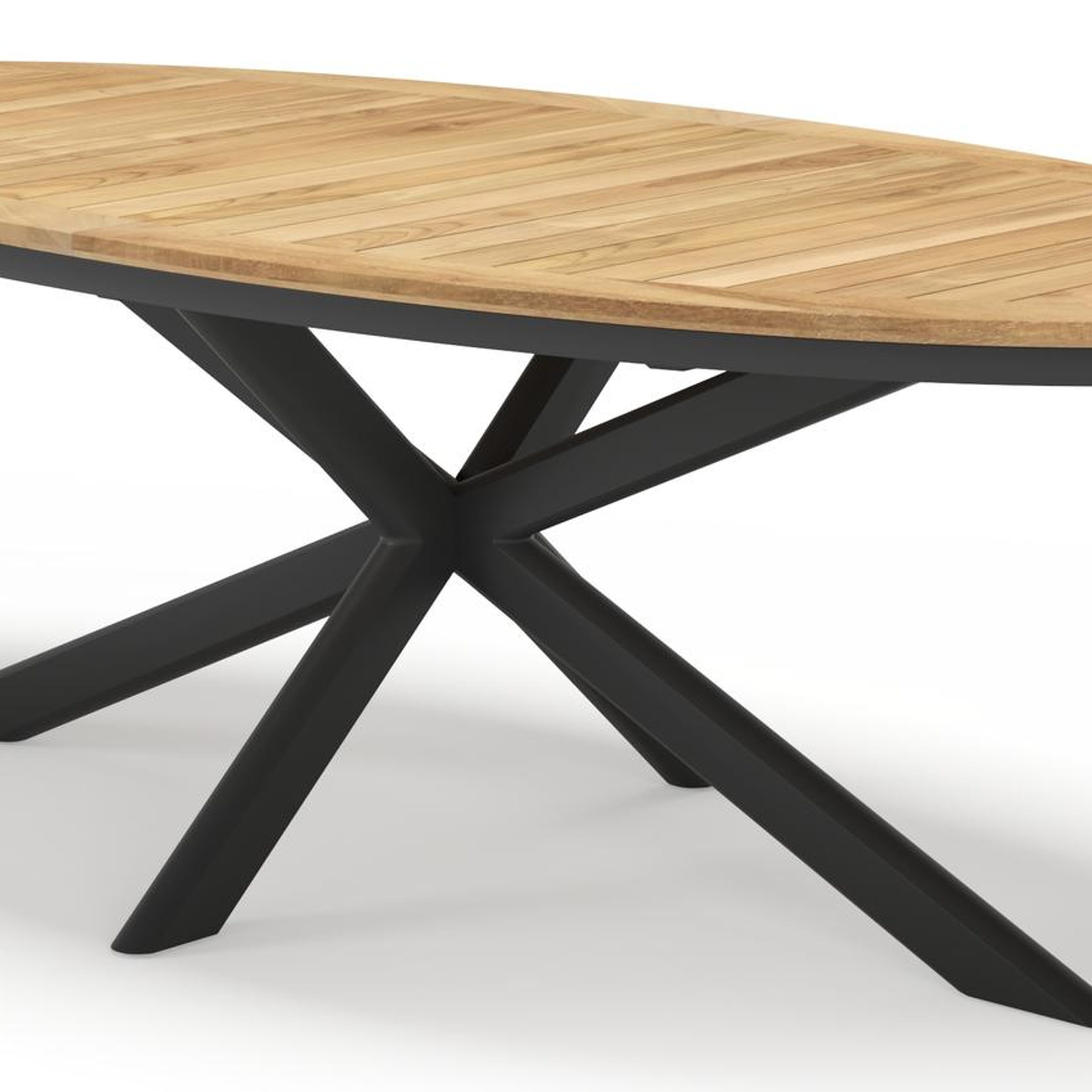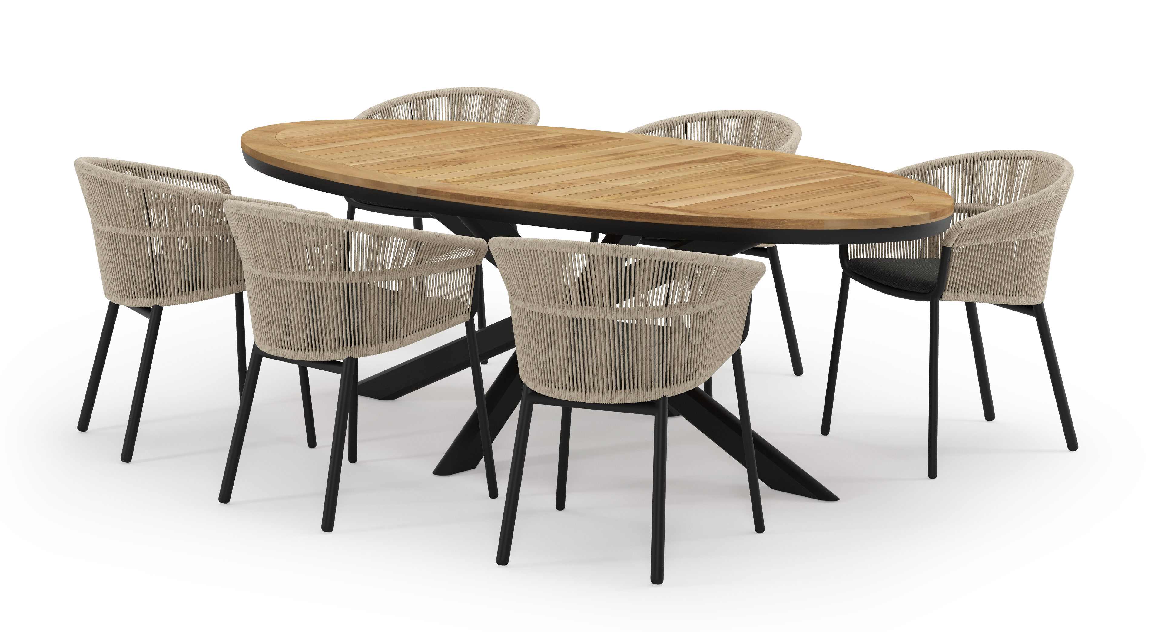 Pamplona ovale tuinset in zwart aluminium en teak natural finish met 6 Matera tuinstoelen | Exterioo tuinmeubelen