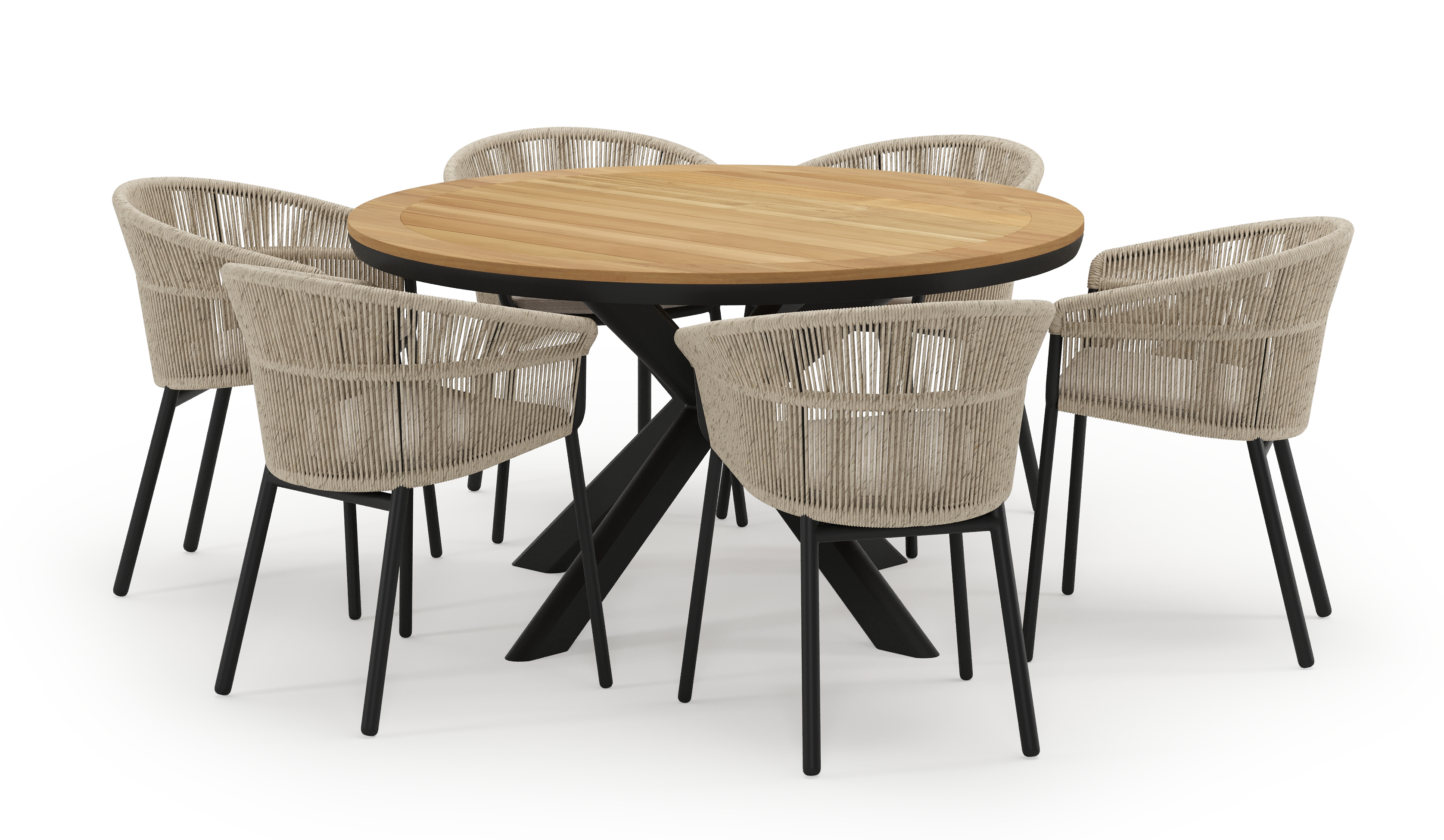 De Pamplona tuinset straalt met zijn afgeronde vorm en opvallende kruispoot een robuuste hedendaagse look uit. Deze tuinset is ideaal voor een groot gezelschap.