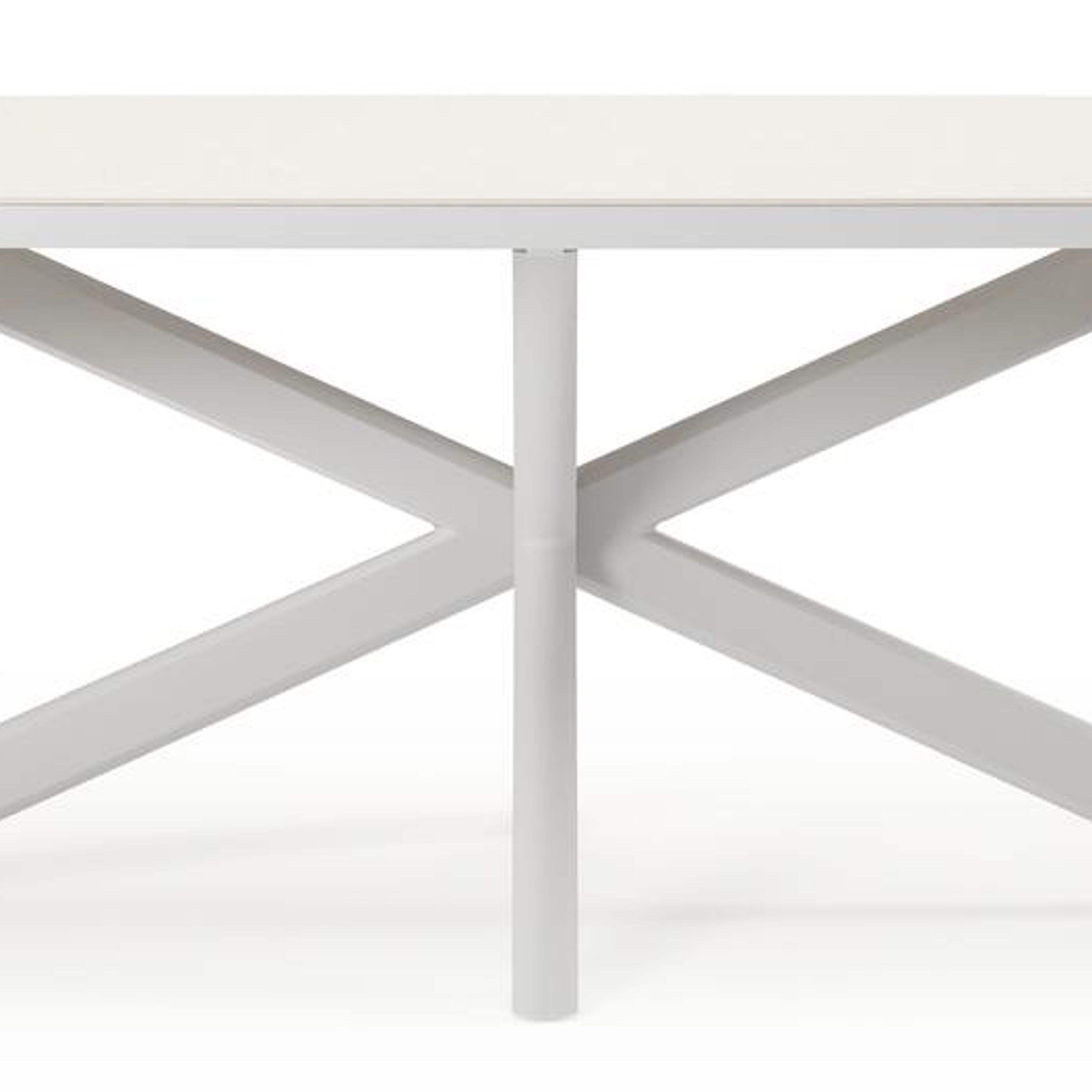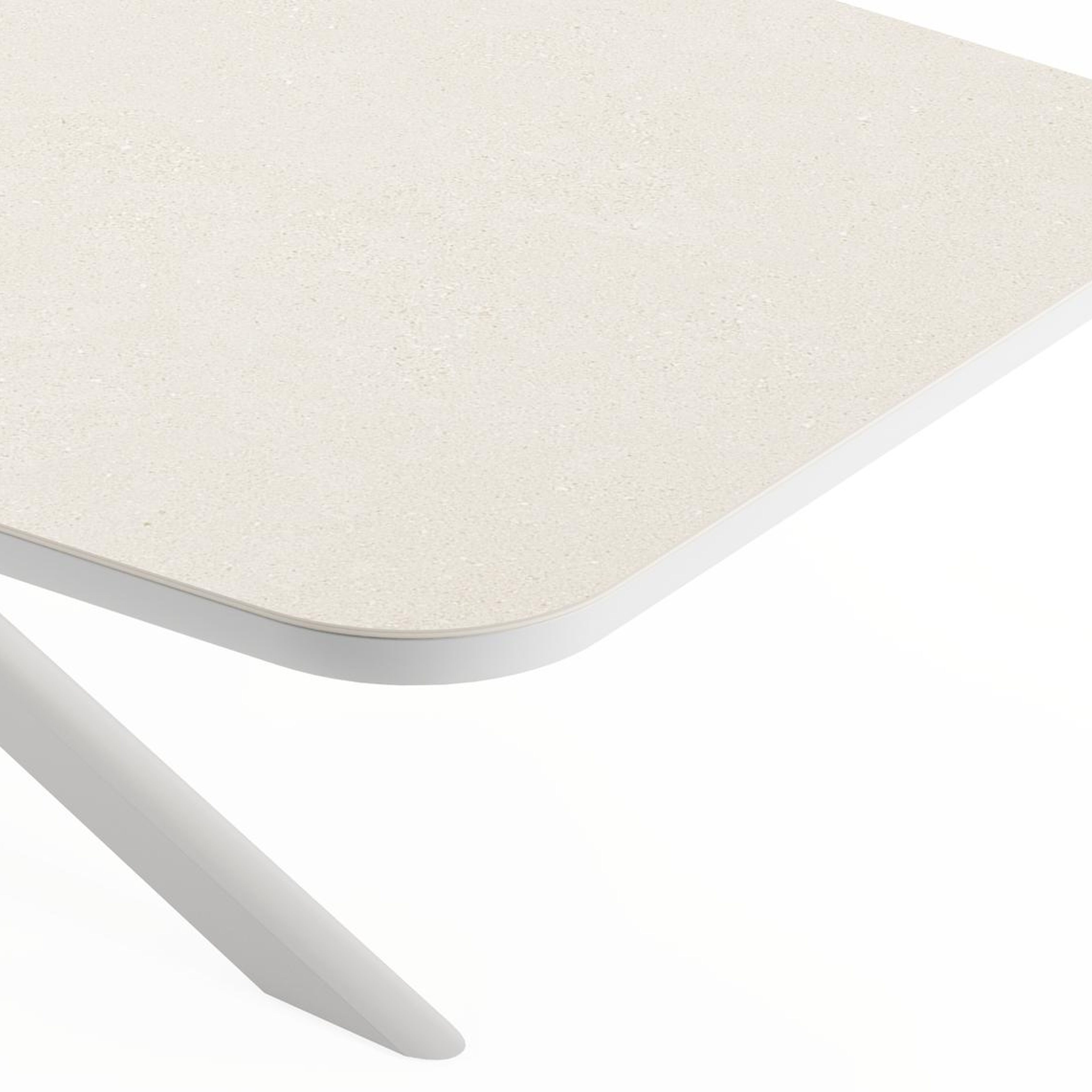 Pamplona tuintafel bootvorm in wit aluminium en sintered stone Crema minerale - L 270 x B 115 x H 72 cm | Exterioo tuinmeubelen