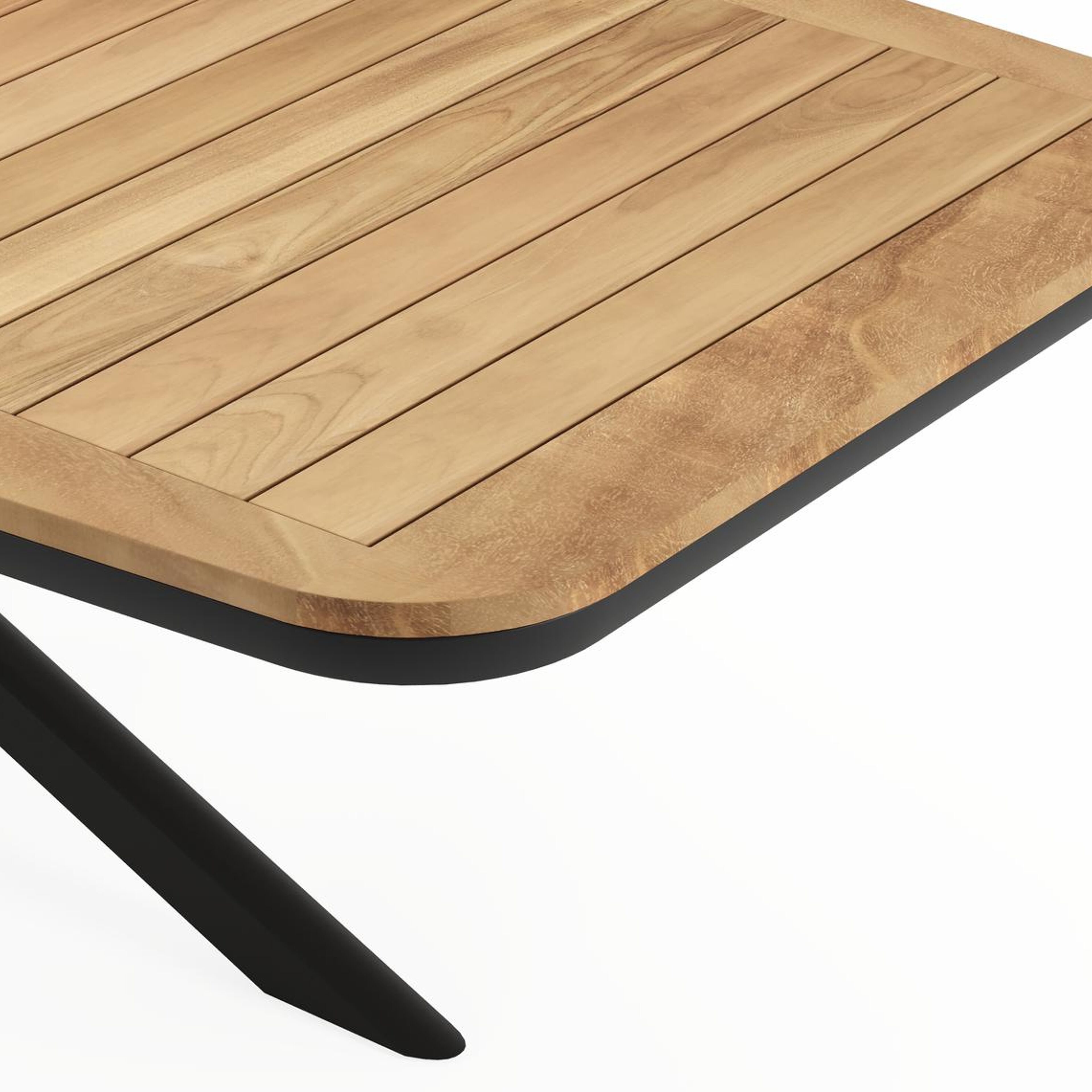 Een tafelblad uit teak staat gelijk aan bijzondere kwaliteit en natuurlijk design. Teak is een kwalitatieve houtsoort gekenmerkt door zijn hardheid. Aangezien hout leeft, kan de structuur of kleur licht anders zijn dan op het beeld weergegeven.