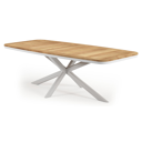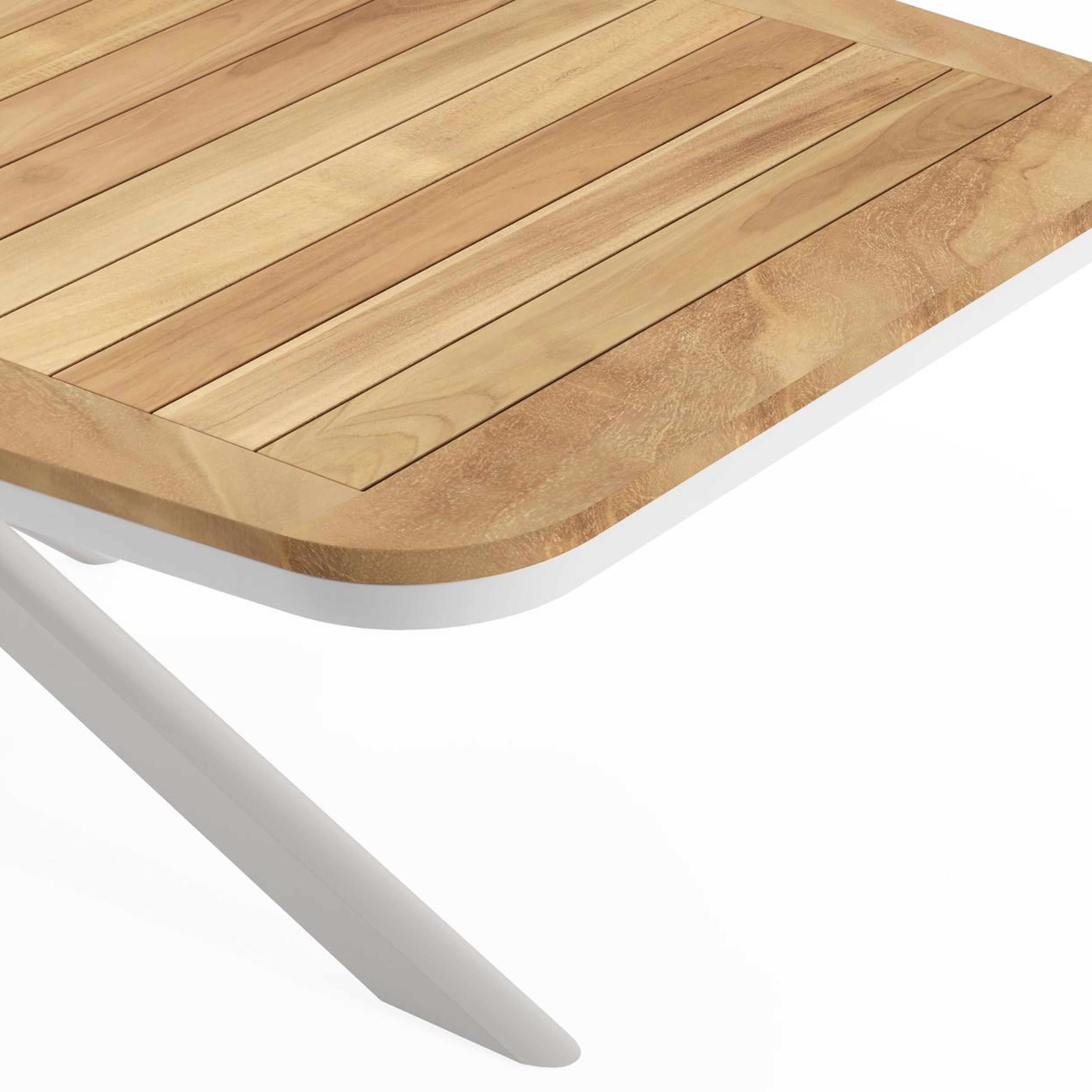 Pamplona tuintafel bootvorm in wit aluminium en teak natural finish - L 240 x B 110 x H 72 cm | Exterioo tuinmeubelen
