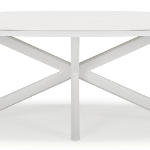 De Pamplona tuintafel straalt met zijn afgeronde vorm en opvallende kruispoot een robuuste hedendaagse look uit. Deze tuintafel is ideaal voor een groot gezelschap.
