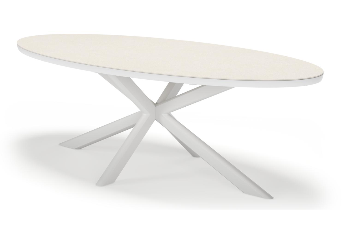 Pamplona tuintafel ovaal in wit aluminium en sintered stone Crema minerale - L 240 x B 115 x H 72 cm | Exterioo