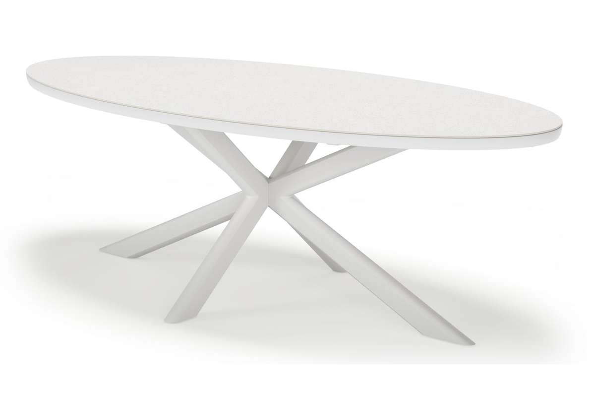 Pamplona tuintafel ovaal in wit aluminium en sintered stone Topo minerale - L 240 x B 115 x H 72 cm | Exterioo