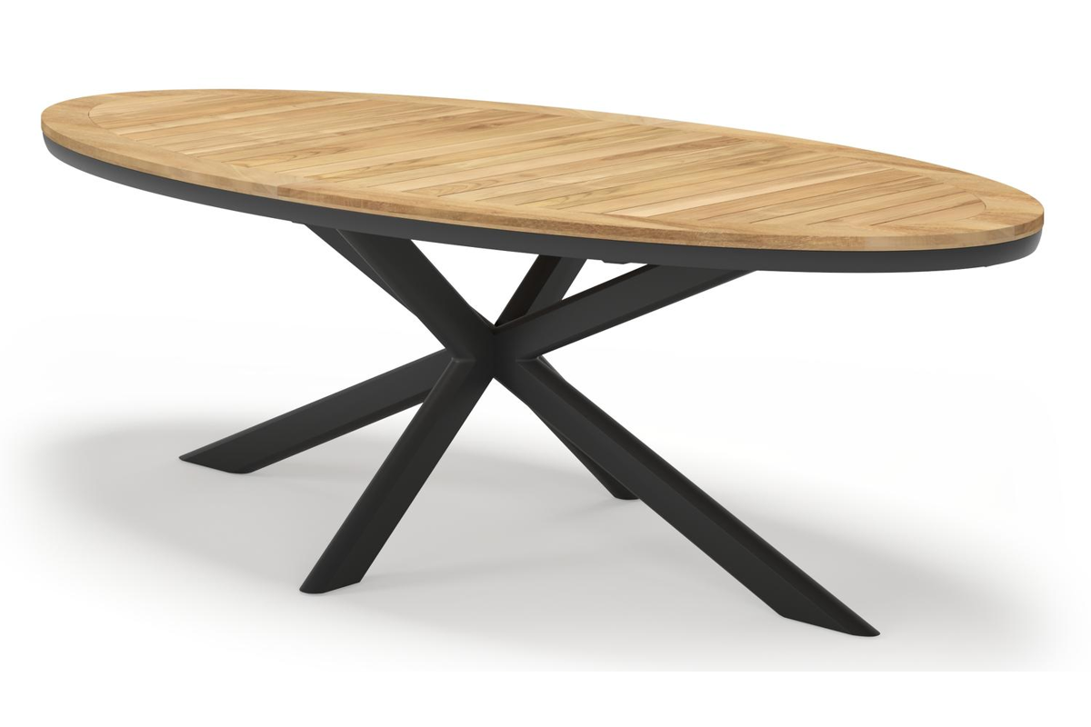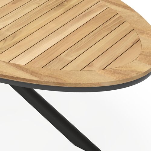 Pamplona tuintafel ovaal in zwart aluminium en teak natural finish - L 240 x B 115 x H 72 cm | Exterioo