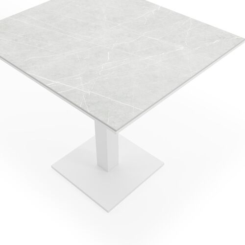 De Piemonte tafel heeft een minimalistisch, strak ontwerp en is herkenbaar aan zijn stevige centrale poot. Deze tafel is ideaal voor op balkon of klein terras. Deze tafel is afgewerkt met een Shilin tafelblad. De aardse kleurschakeringen passen perfect aan bij onze nieuwe outdoortrends. In het tafelblad is er een licht reliëf te voelen, waardoor het Shilin blad de look & feel heeft van echte natuursteen. In het blad is een fijne glinster aanwezig. Het voordeel van volkeramische tafelbladen is dat ze krasbestendig zijn en bestand zijn tegen alle weersomstandigheden.