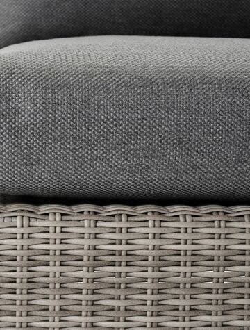 De Pintura loungezetel is de ideale toevoeging tot jouw terras of lounge. Je kan deze 1-zit gebruiken als extra uitbreiding van jouw loungeset.Het frame van de lounge is omgeven door wicker en geeft dezelfde uitstraling als een organisch materiaal. Wicker is een gevlochten (ronde of halfronde draad) kunststof en een bijzonder weersbestendig en onderhoudsvriendelijk materiaal. Kortom, zeer geschikt voor buitengebruik.Het zitkussen is inclusief en gemaakt uit Weather+ Softtouch. Het duurzame kussen voelt zacht aan en is vuilafstotend. Weather+ Softtouch kussens zijn beperkt waterafstotend en hebben één laag standaard schuimkussen in een waterbestendige binnenhoes, maar worden best binnen genomen bij langdurige regen en tijdens de wintermaanden.