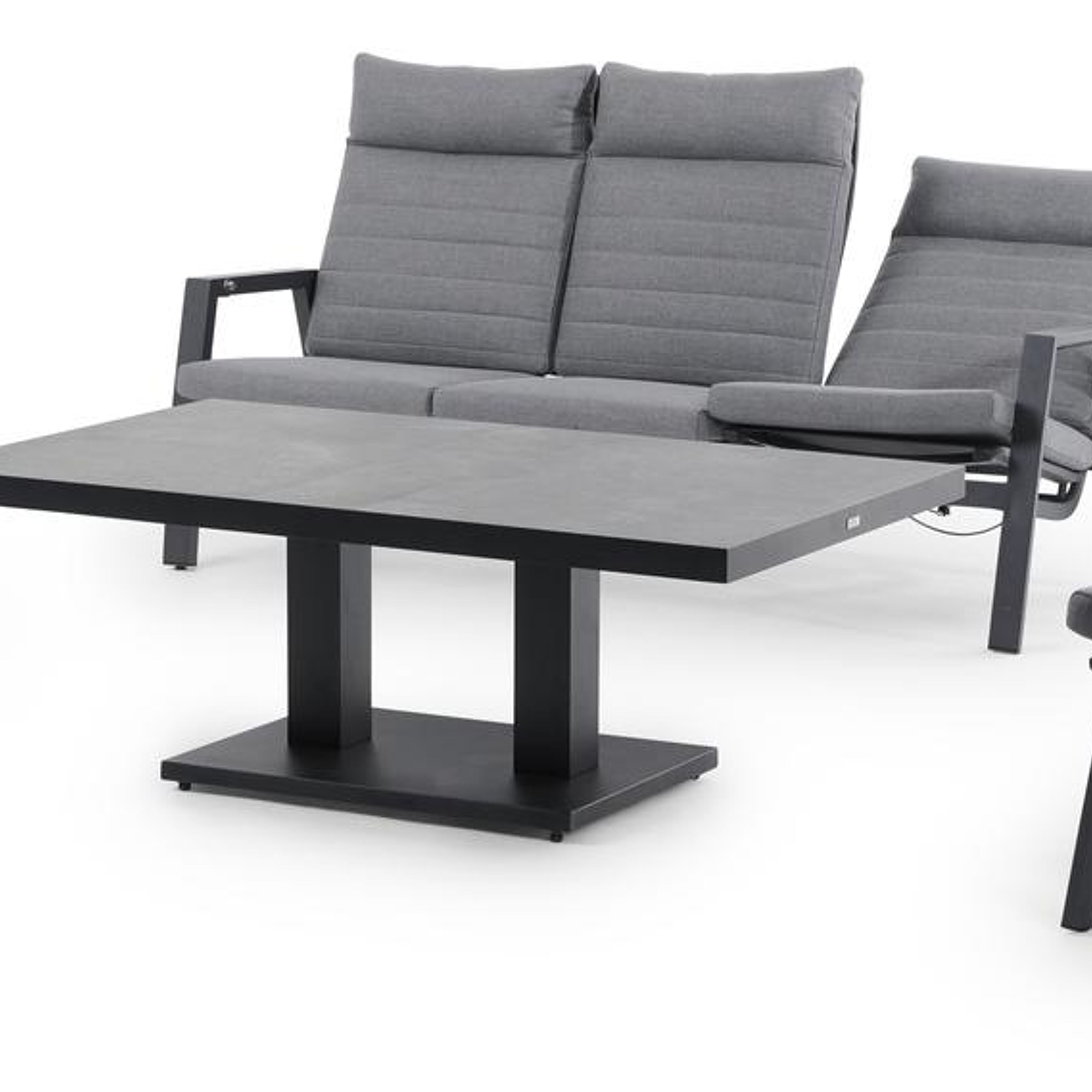 De loungetafel is inbegrepen en volledig gemaakt uit roestvrij aluminium.