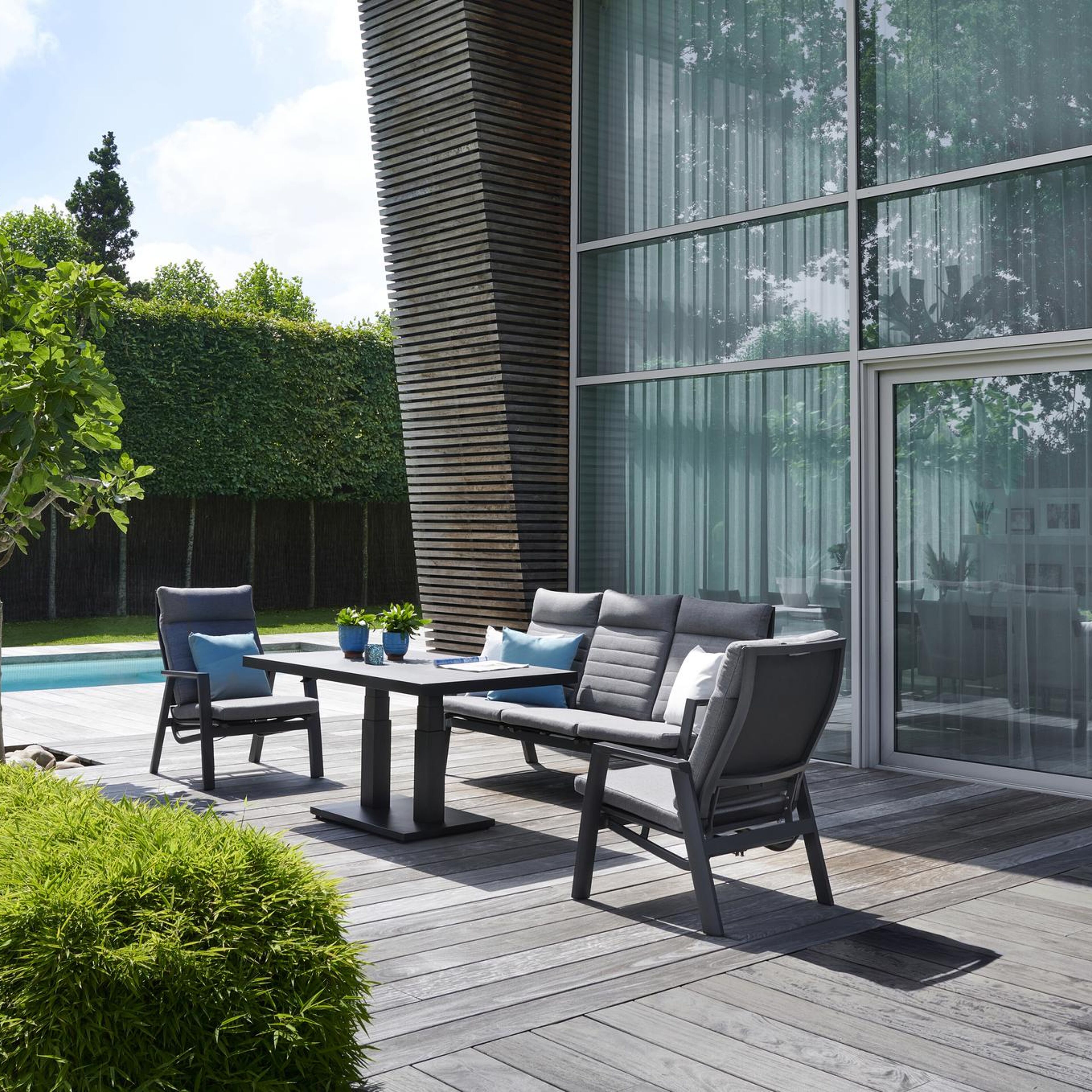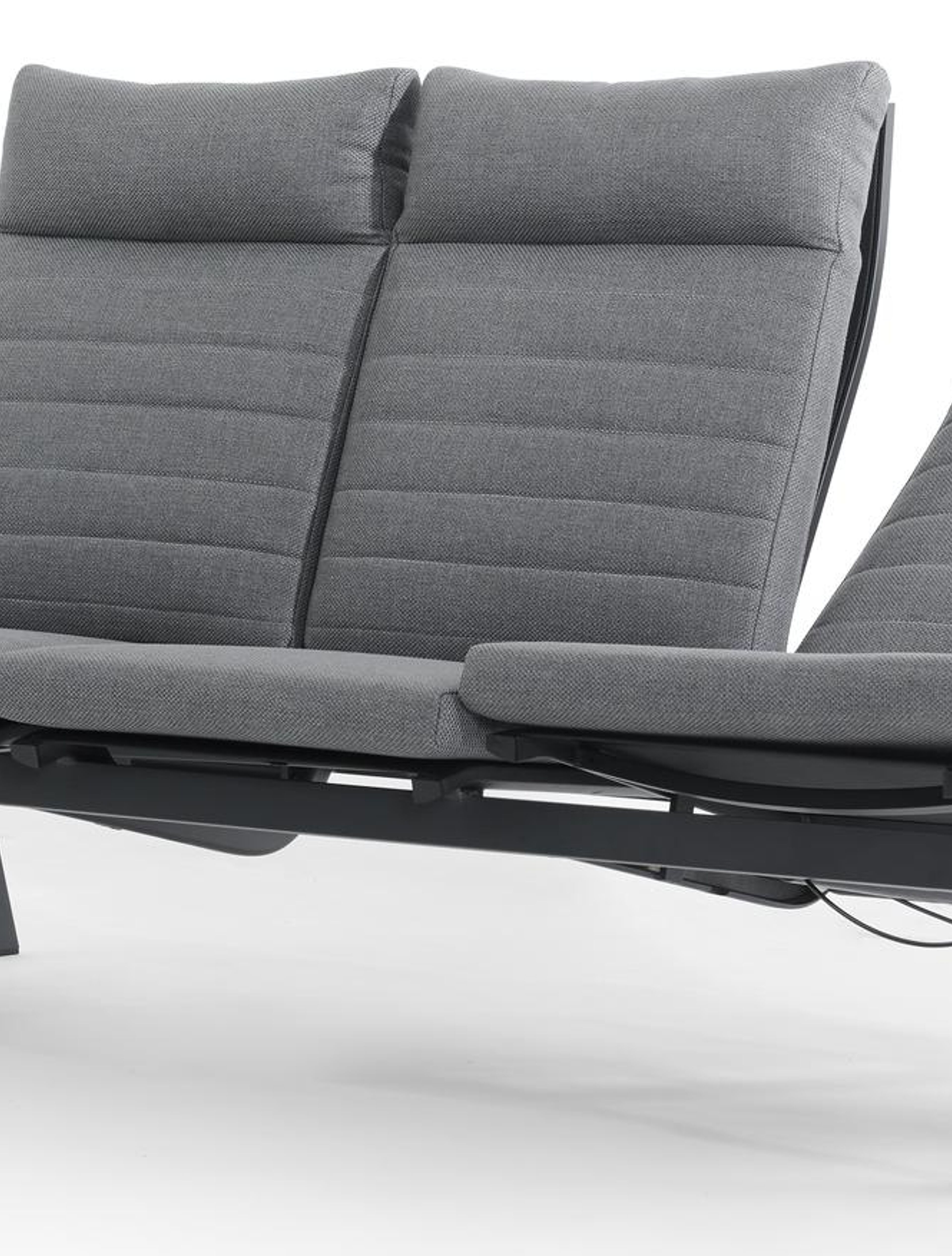 De Prato is een tijdloze lounge met hoge rugleuning waarbij je geniet van prima zitcomfort. De buitenste zitplaatsen zijn verstelbaar via het drukknopsysteem voor de perfecte positie.