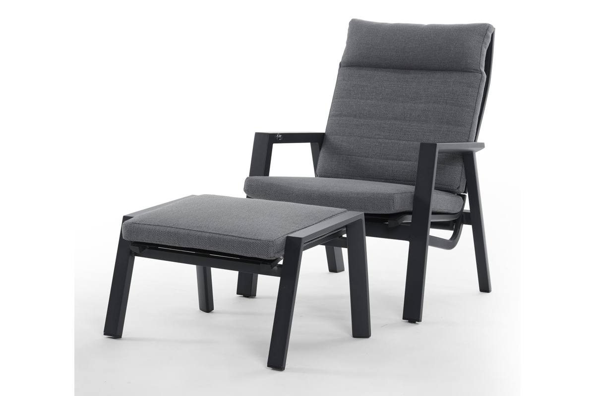 Prato loungeset in zwart aluminium met grijs weather+ textilene kussens | Exterioo