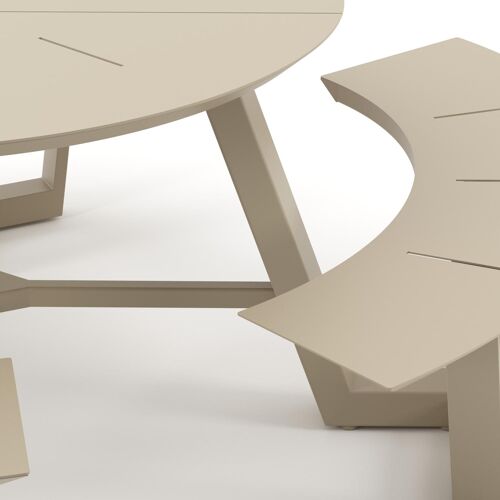 Rondino picknicktafel in beige aluminium - Dia. 207 x H. 71.5 cm | Exterioo