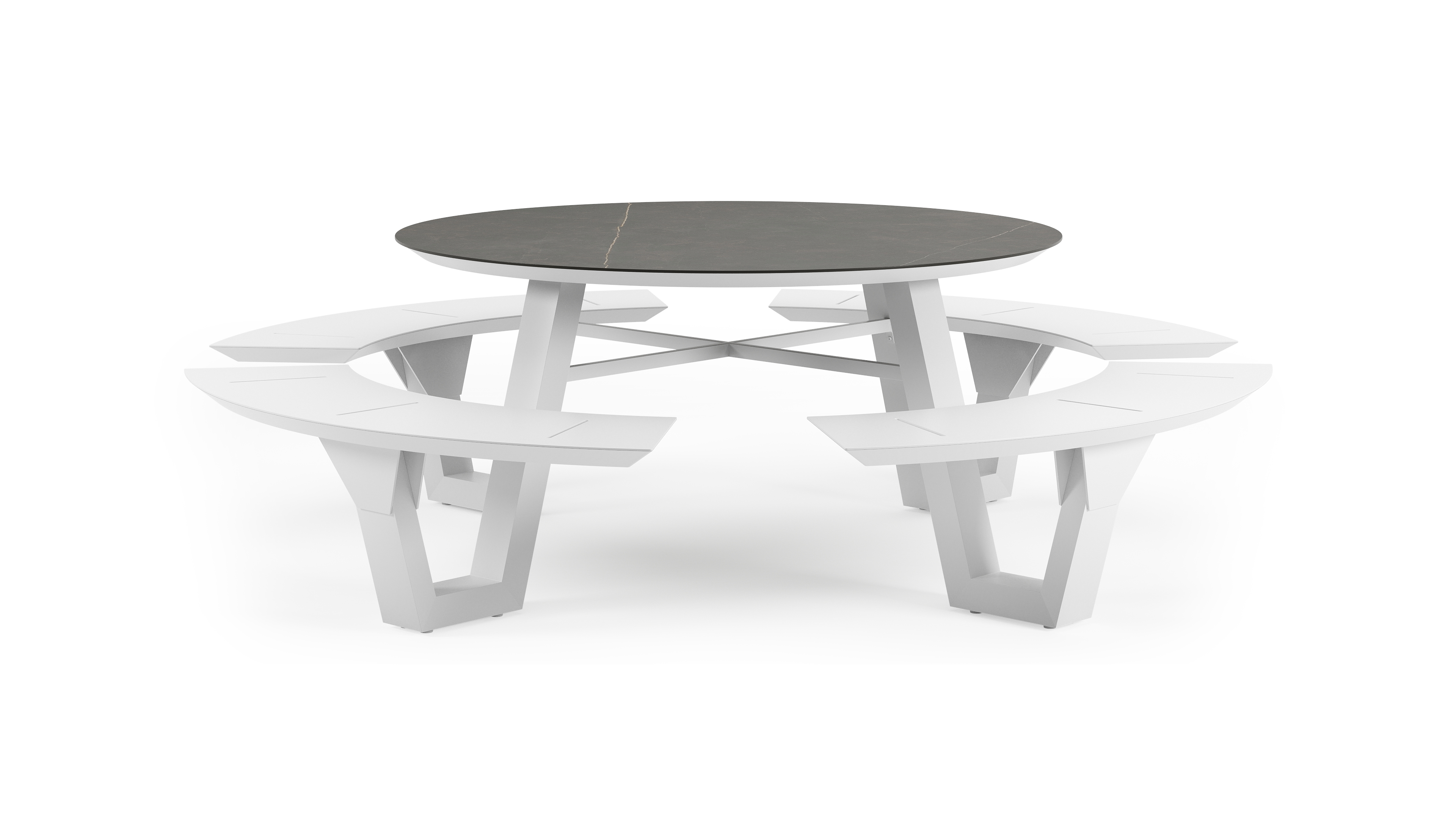 Rondino picknicktafel rond in wit aluminium en volkeramiek Calatorao - Dia. 236 x H 71.5 cm | Exterioo tuinmeubelen