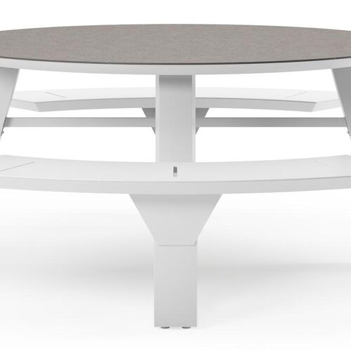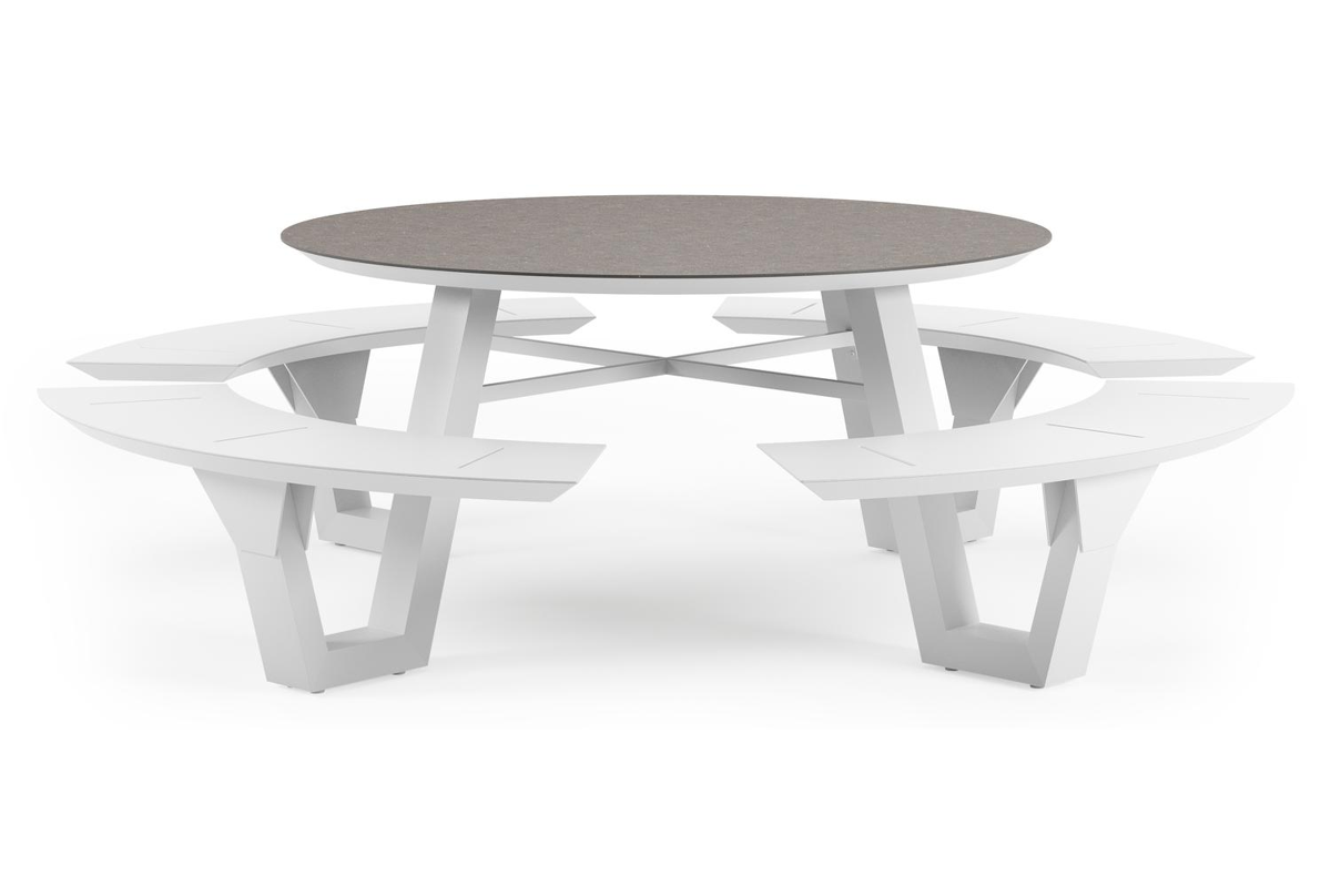 Rondino picknicktafel rond in wit aluminium en volkeramiek Wulong - Dia. 236 x H 71.5 cm | Exterioo