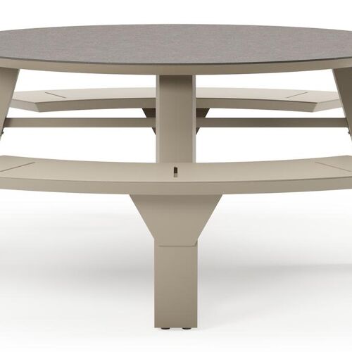 Rondino picknicktafel rond in beige aluminium en volkeramiek Wulong - Dia. 148 x H 71.5 cm | Exterioo